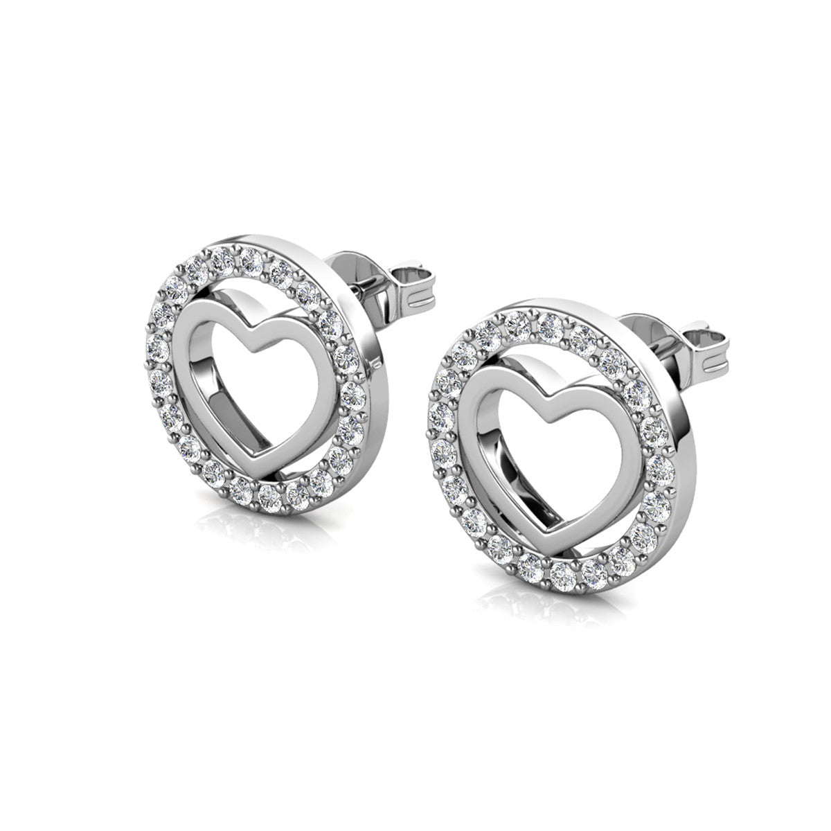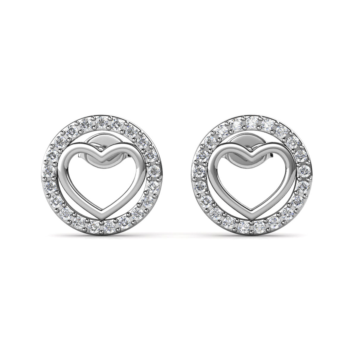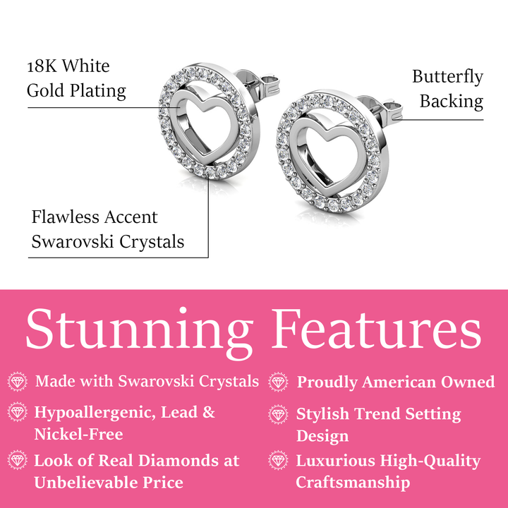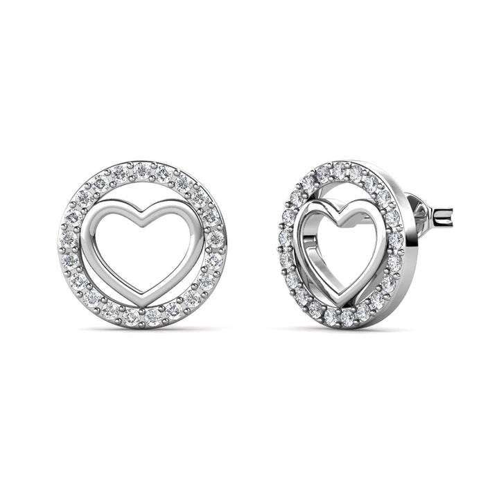 Khaleesi 18k White Gold Plated Silver Heart Stud Earrings with Swarovski Crystals