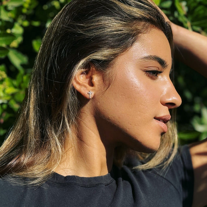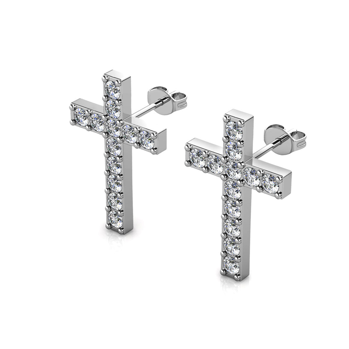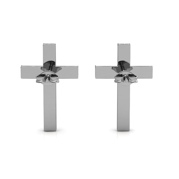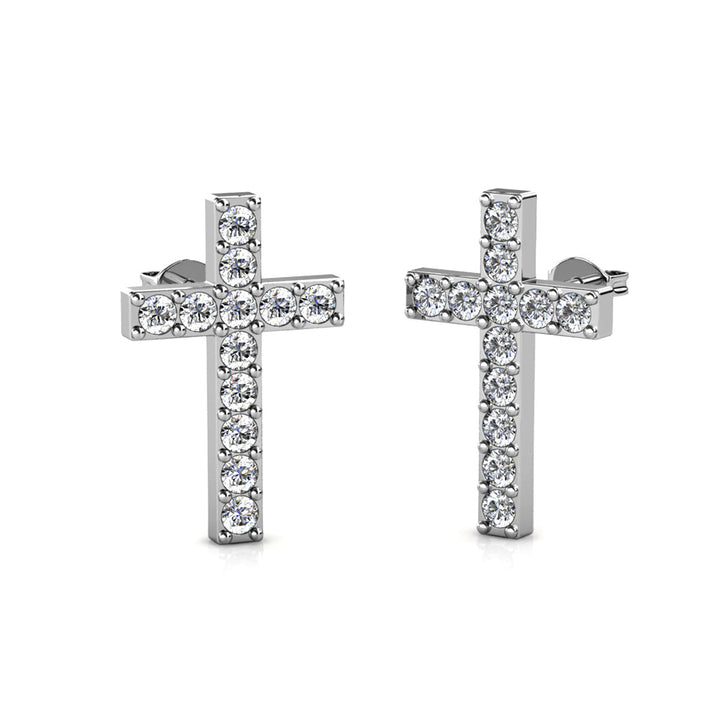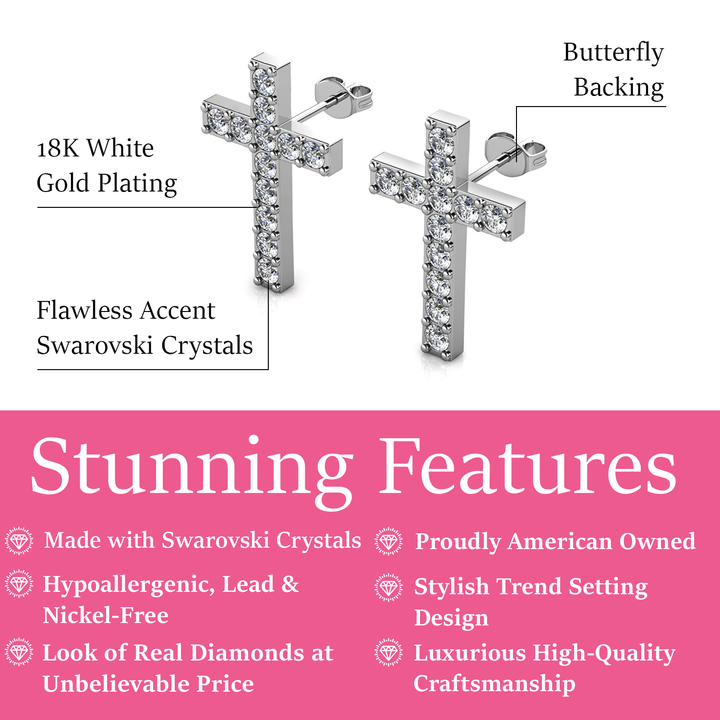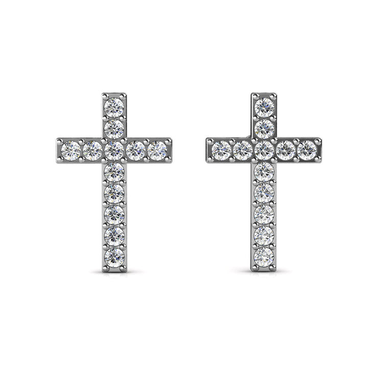 Nayeli 18k White Gold Plated Silver Cross Stud Earrings with Swarovski Crystals