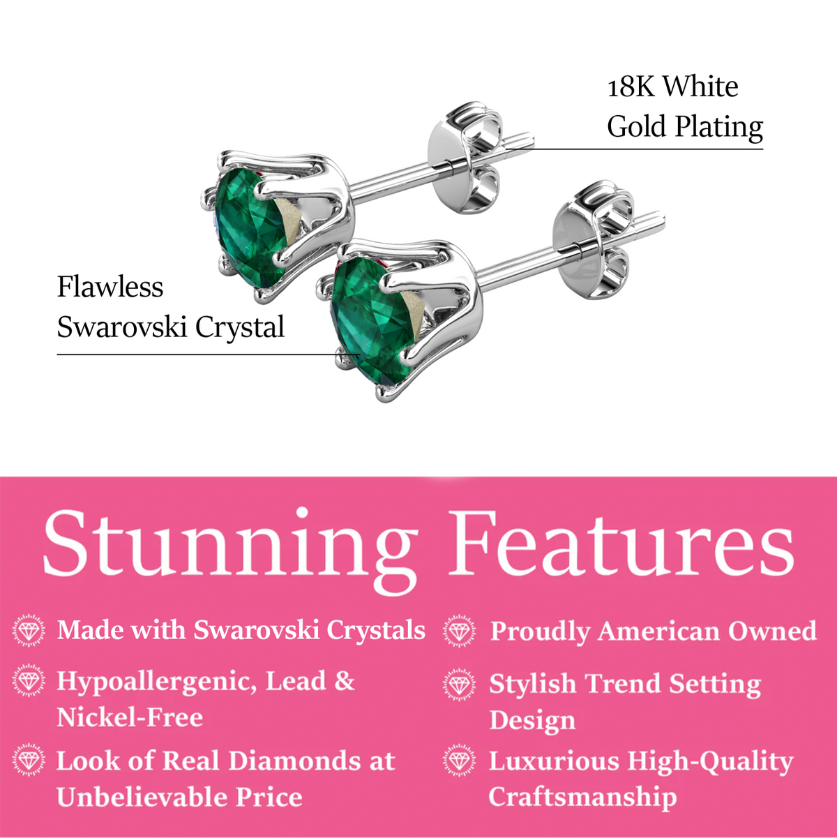 May Birthstone Emerald Earrings 18k White Gold Plated Stud Earrings with 1CT Swarovski Crystal