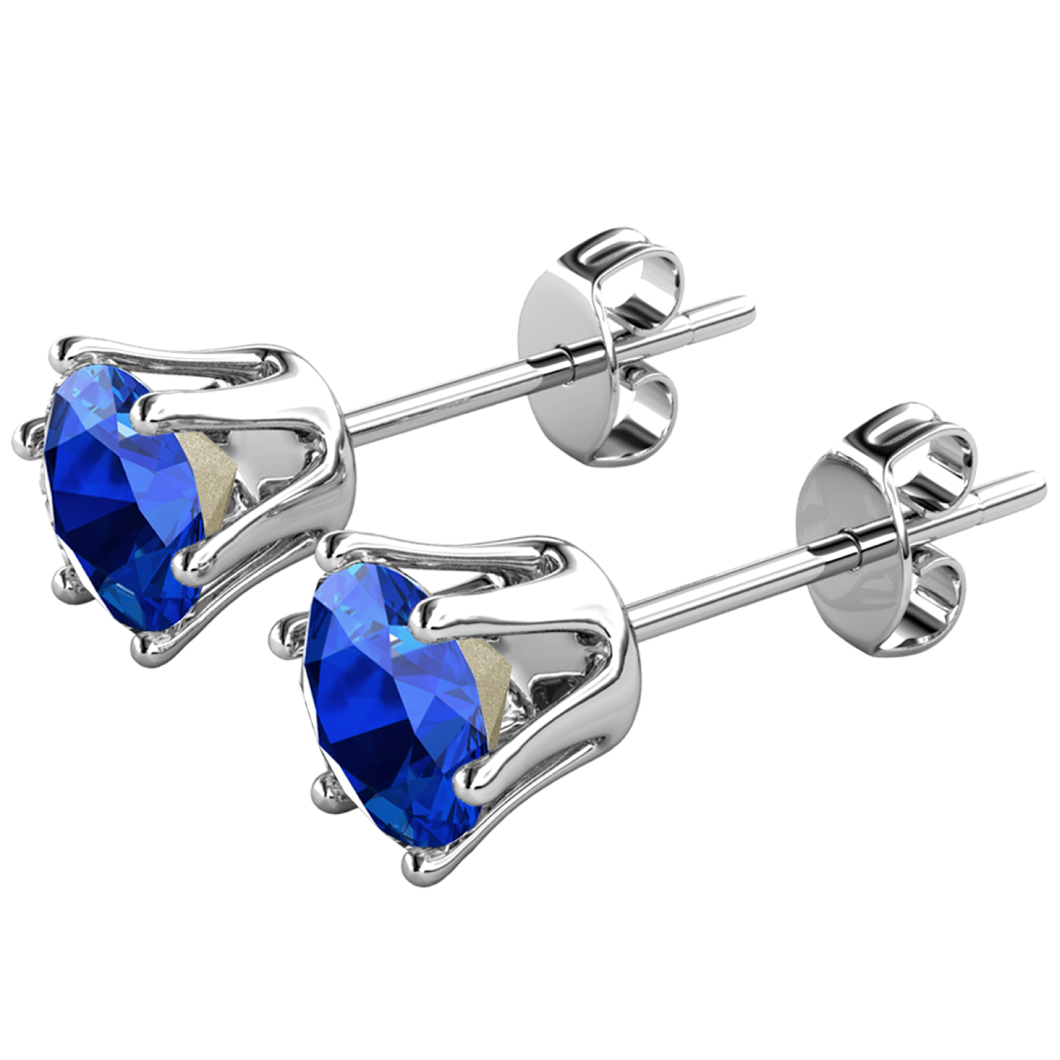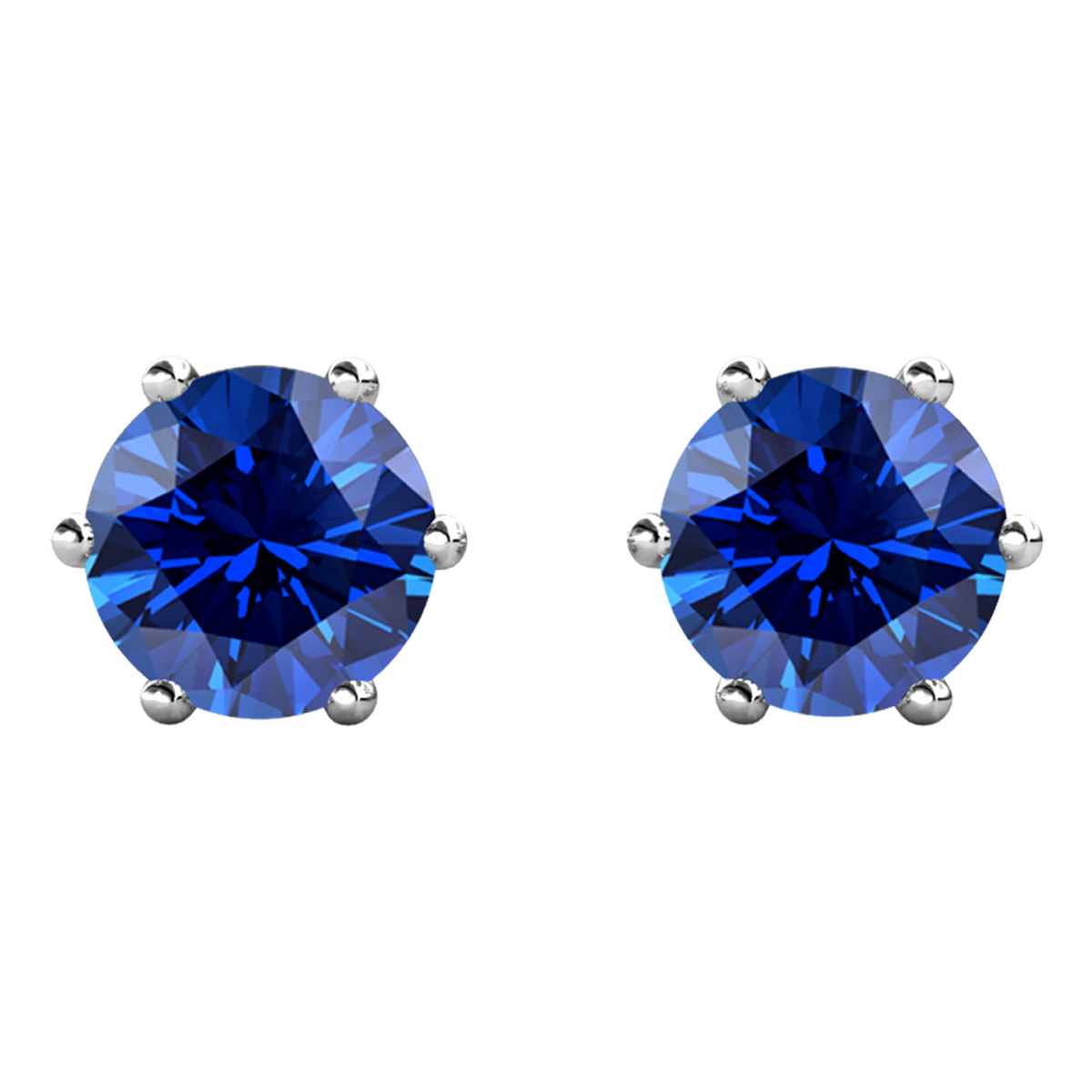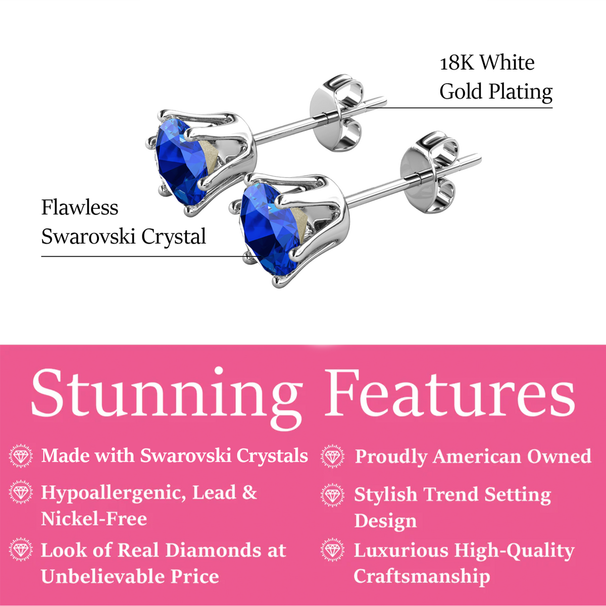September Birthstone Sapphire Earrings 18k White Gold Plated Stud Earrings with 1CT Swarovski Crystal