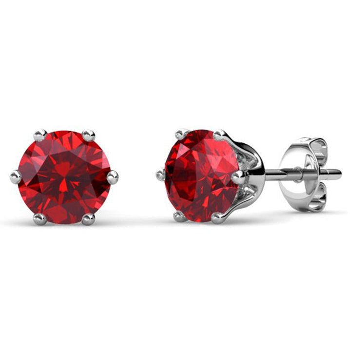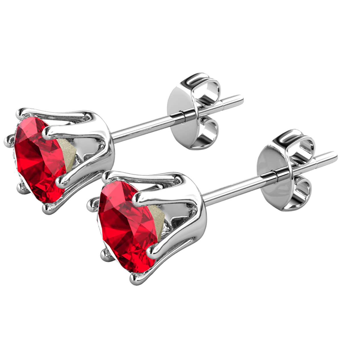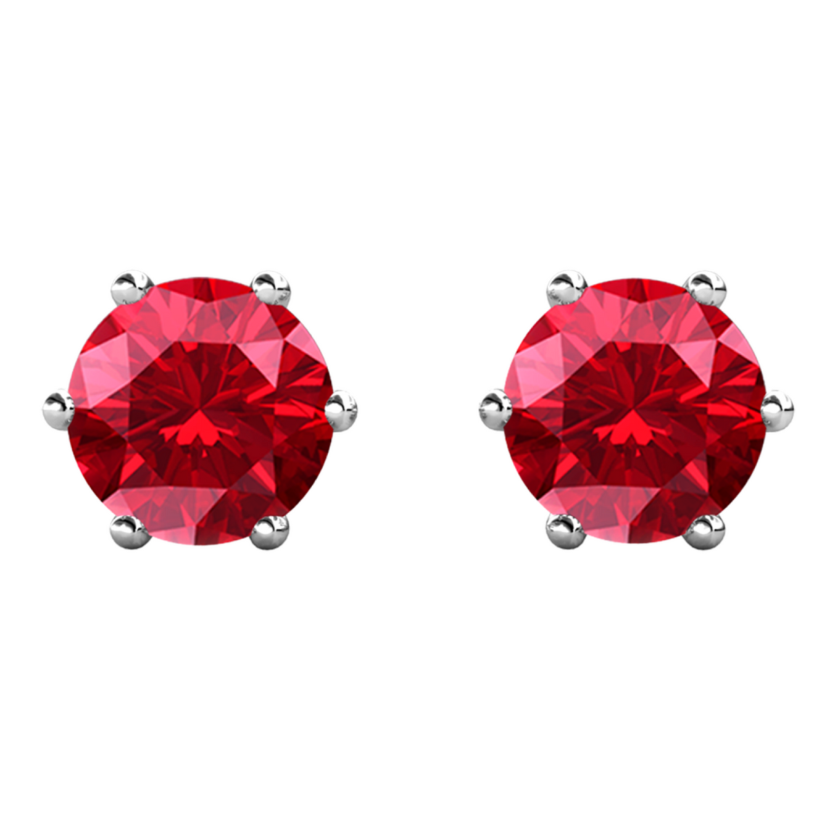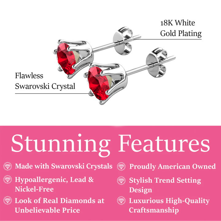 July Birthstone Ruby Earrings 18k White Gold Plated Stud Earrings with 1CT Swarovski Crystal
