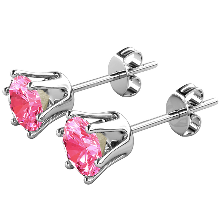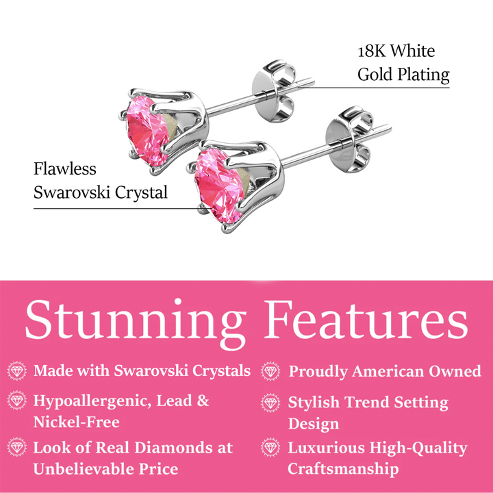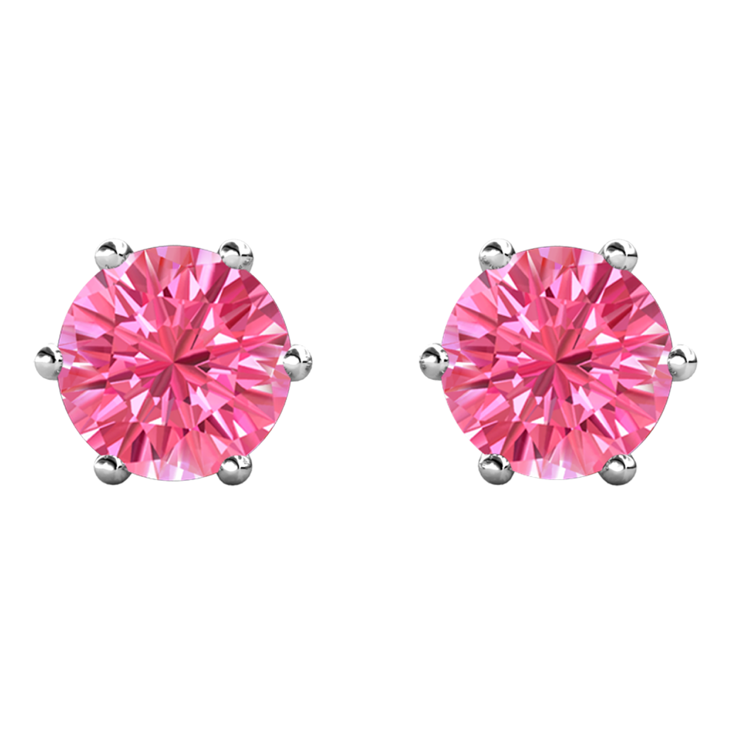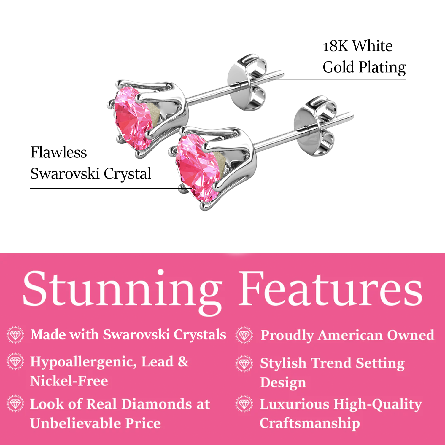 October Birthstone Pink Tourmaline Earrings 18k White Gold Plated Stud Earrings with 1CT Swarovski Crystal