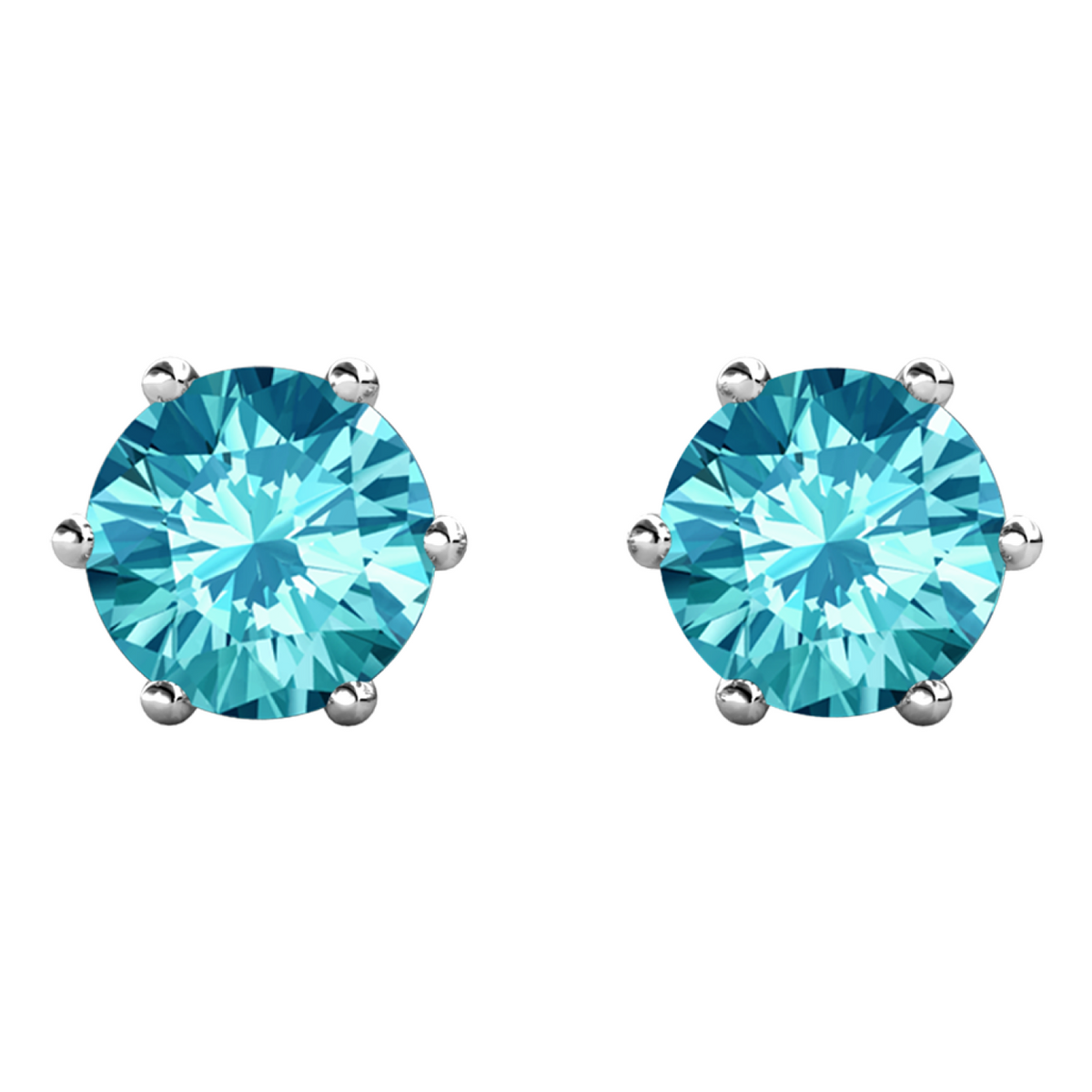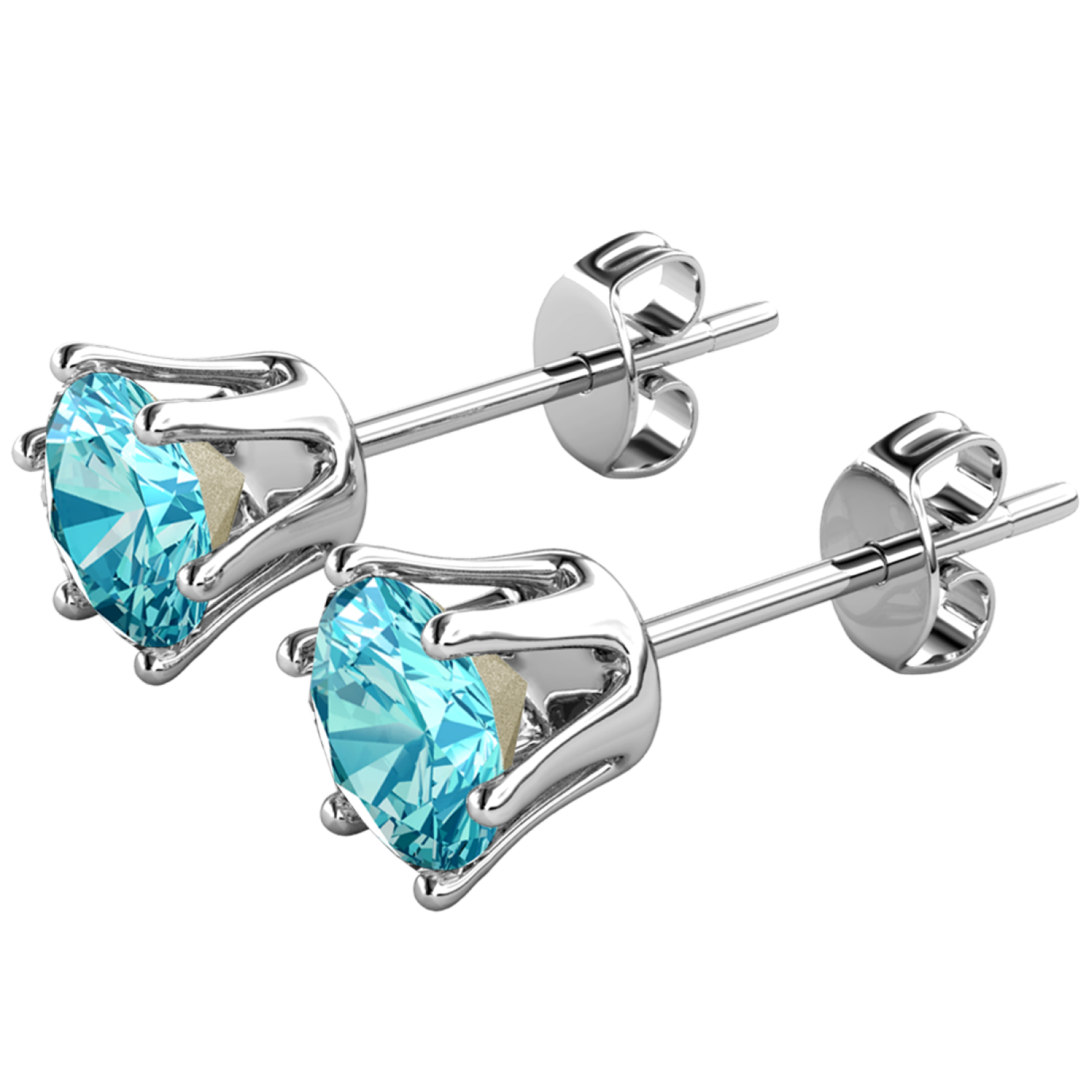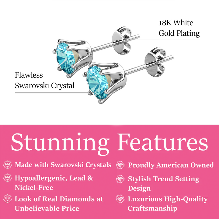 March Birthstone Aquamarine Earrings 18k White Gold Plated Stud Earrings with 1CT Swarovski Crystal