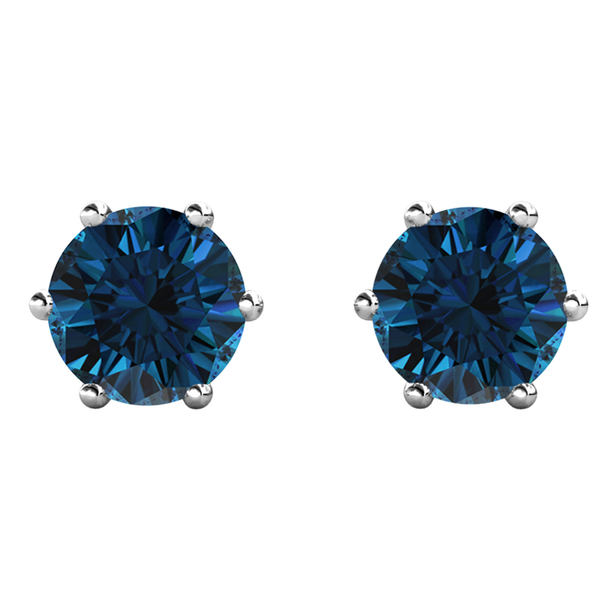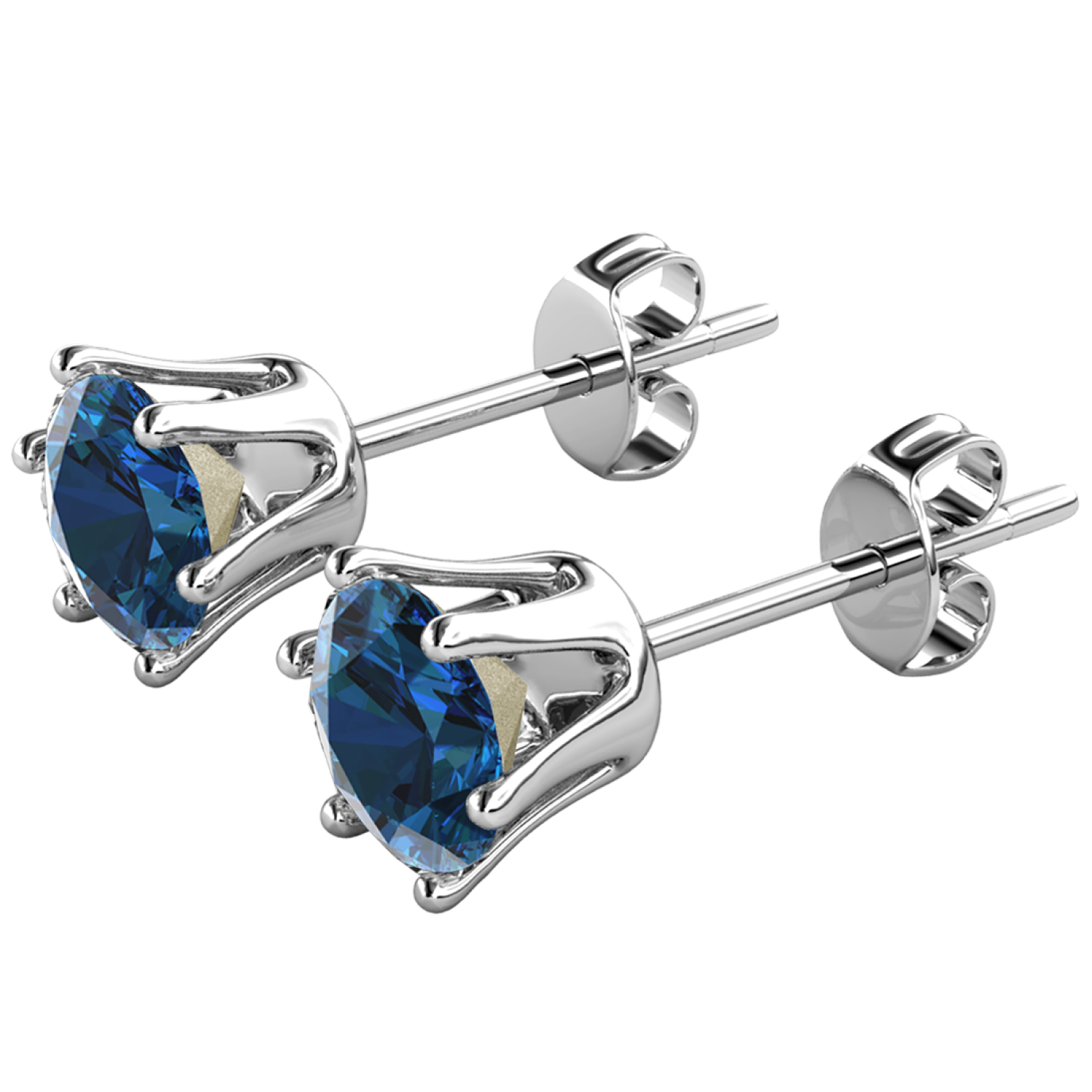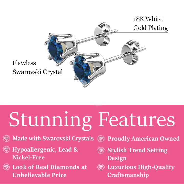 December Birthstone Blue Topaz Earrings 18k White Gold Plated Stud Earrings with 1CT Swarovski Crystal