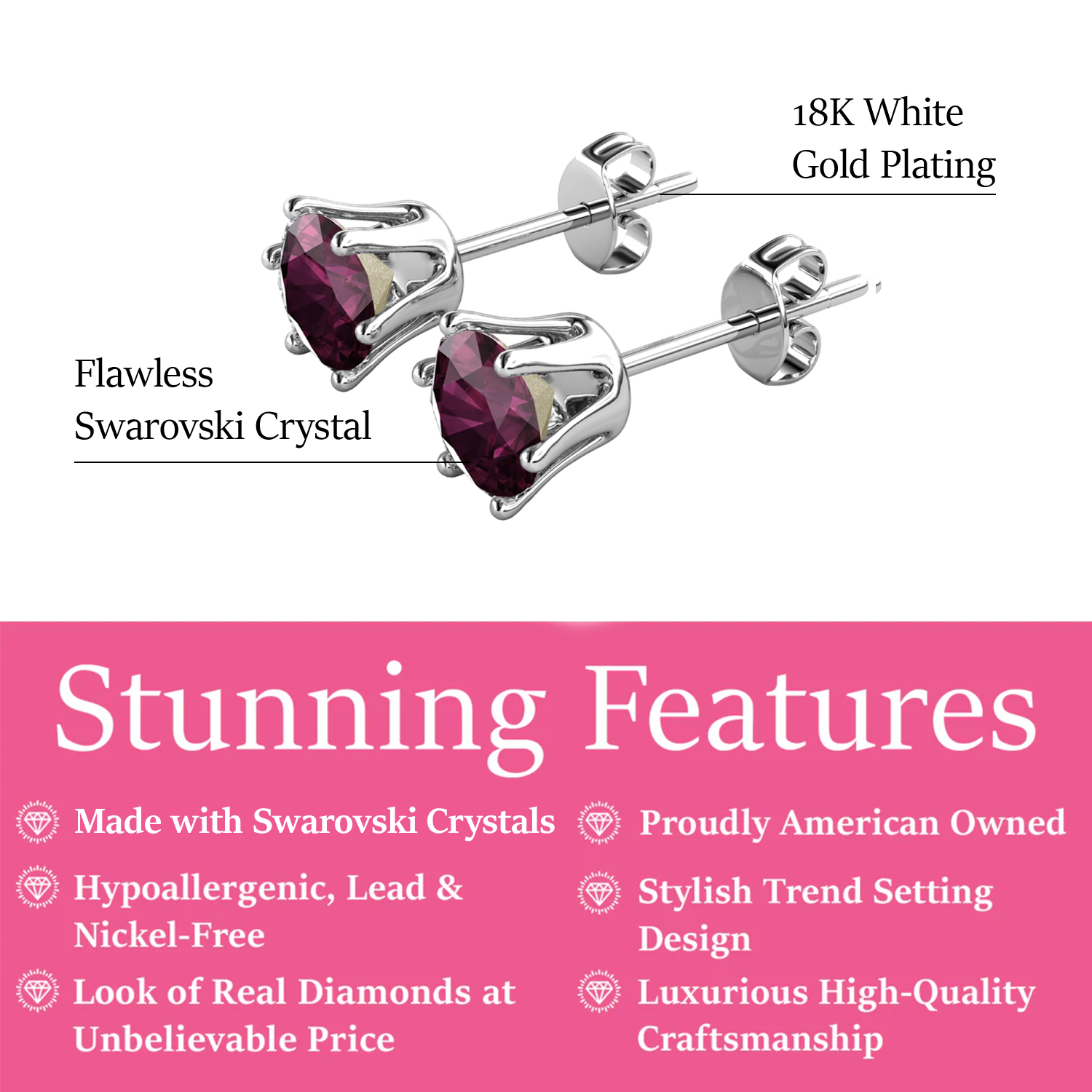 February Birthstone Amethyst Earrings 18k White Gold Plated Stud Earrings with 1CT Swarovski Crystal