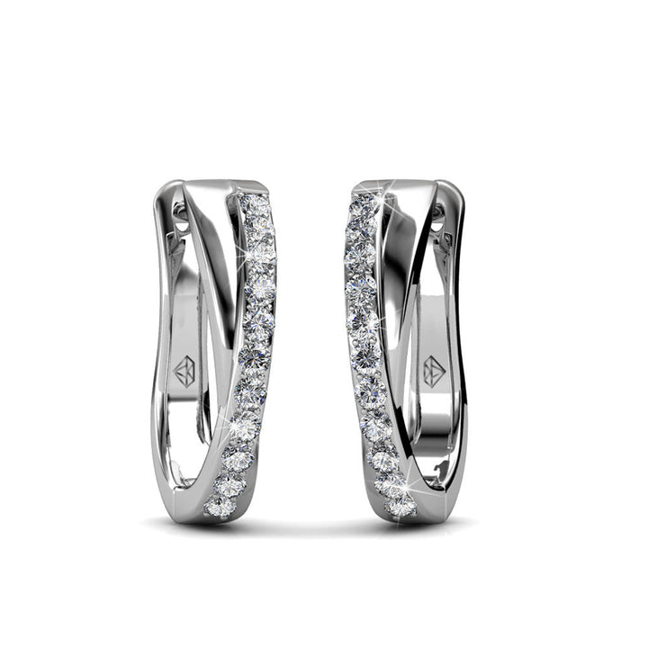 Amaya 18k White Gold Plated 16mm Twisted Hoop Earrings with Swarovski Crystals