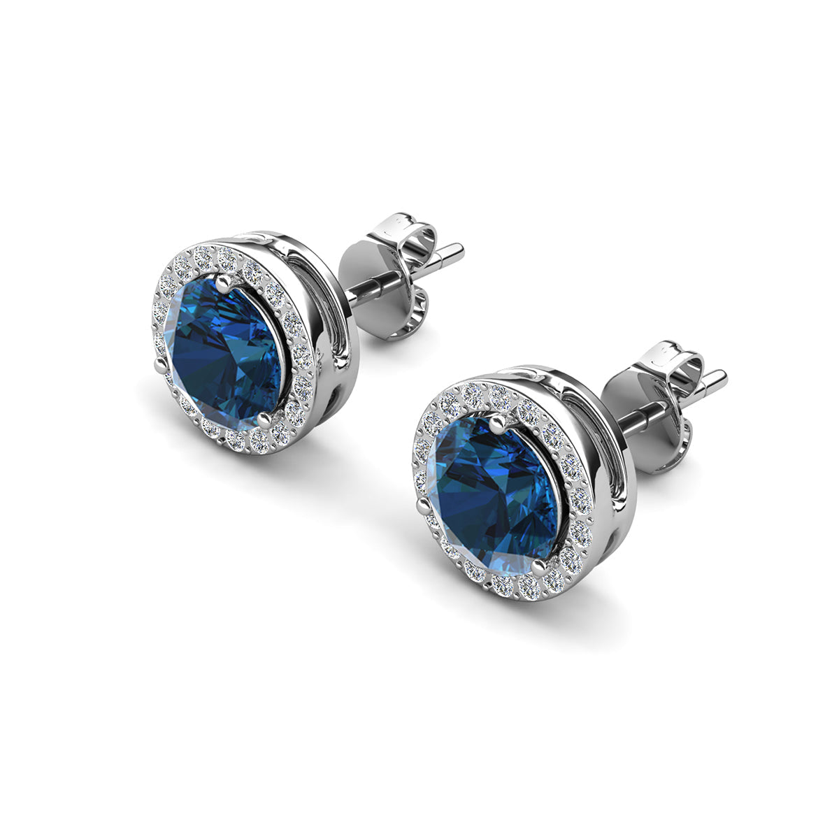 Royal 18k White Gold Plated December Birthstone Halo Earrings with Round Cut Blue Topaz Swarovski Crystals