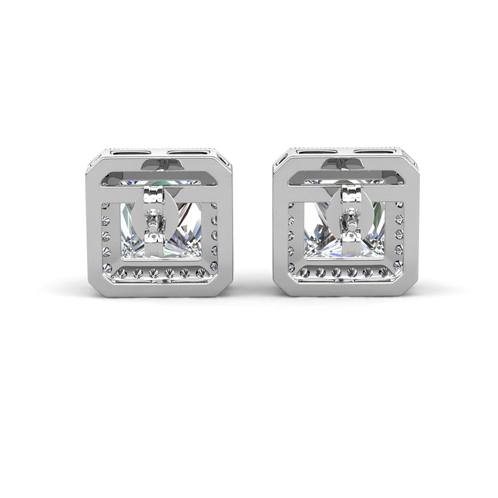 Norah 18k White Gold Plated Princess Cut Halo Stud Earrings with Simulated Diamond Crystals