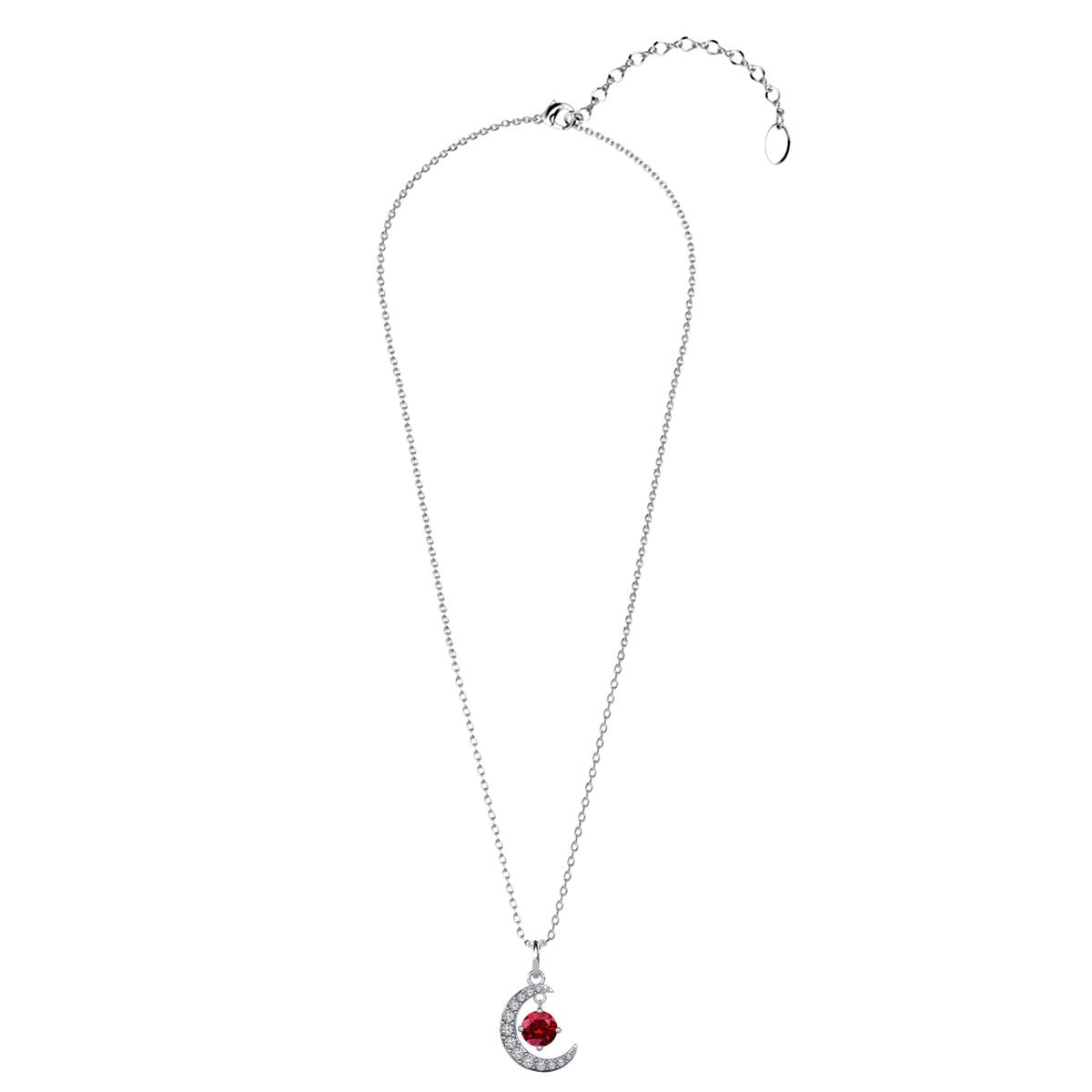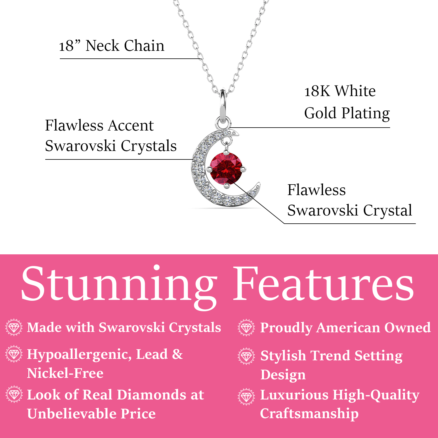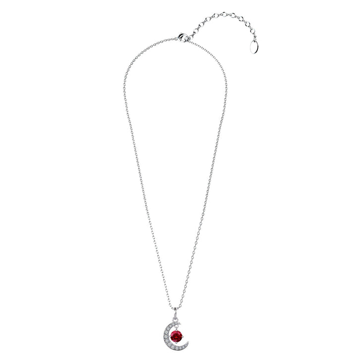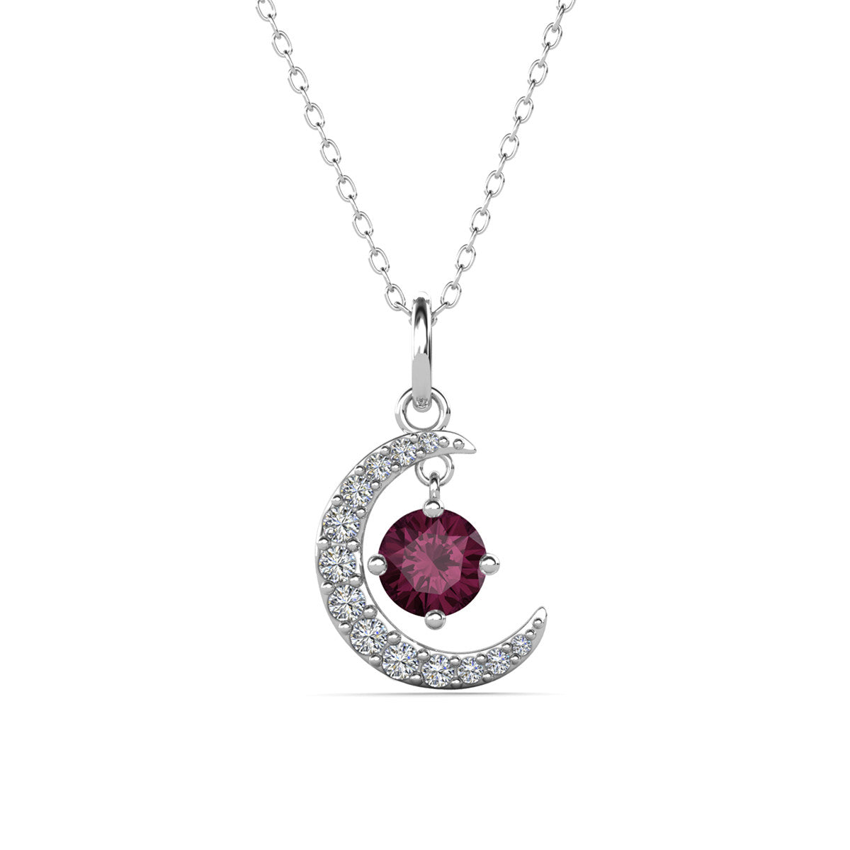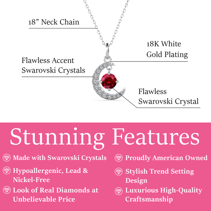 Luna Birthstone 18k White Gold Plated Crescent Pendant Necklace with Round Cut Swarovski Crystals