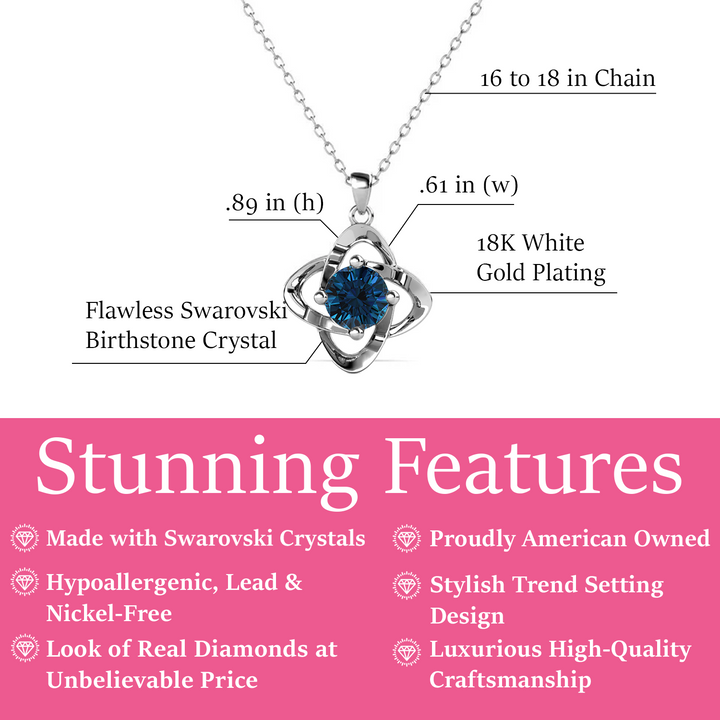 This Infinity December Birthstone Blue Topaz Necklace by Cate & Chloe evokes winter’s tranquil beauty with a glacial blue crystal that symbolizes wisdom, calm, and communication. Framed by a delicate floral design and finished in luminous white gold plating, this necklace is a graceful statement of elegance and serenity—perfect for December birthdays or anyone drawn to sky-blue sparkle.