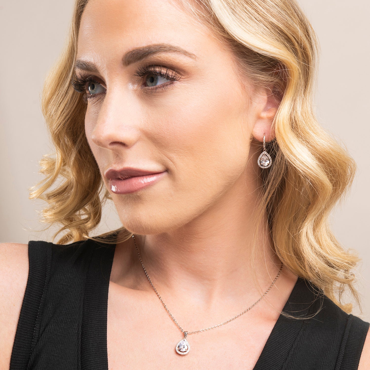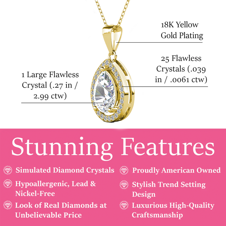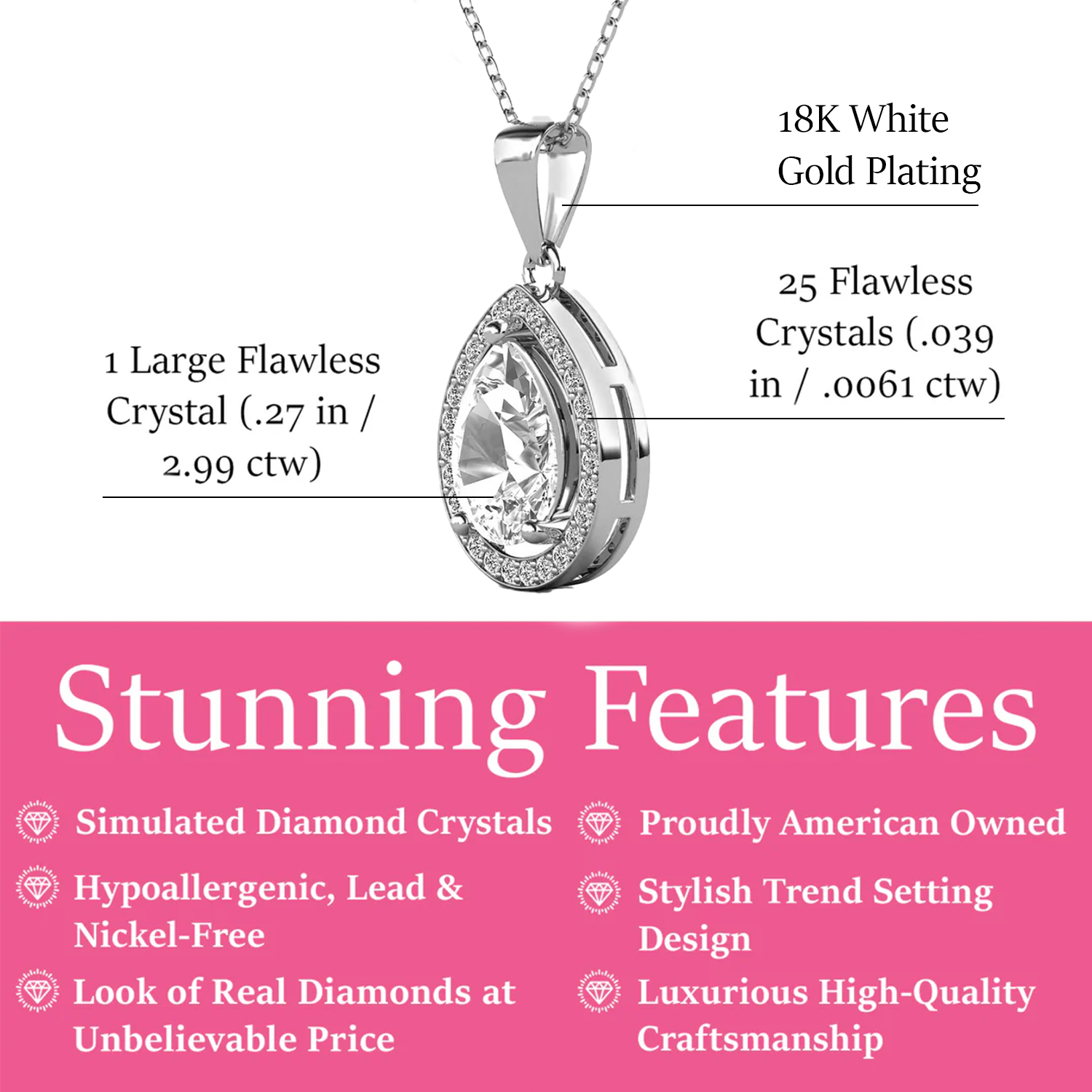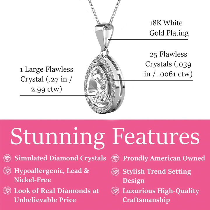 Isabel 18k White Gold Plated Halo Teardrop Necklace with Simulated Diamond Crystal