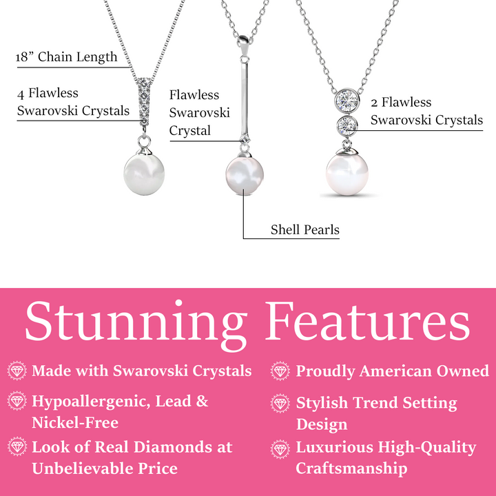 Cate & Chloe Necklace Pack of 3 - Gabrielle, Tatum, Genevieve 18k White Gold Plated Pearl Necklace for Women