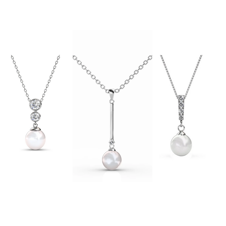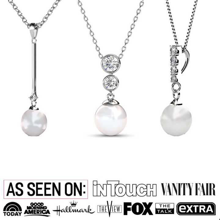 These Gabrielle, Tatum, and Genevieve Necklaces by Cate & Chloe offer three stunning interpretations of timeless femininity in one elegant set. Each piece showcases its own distinct silhouette and styling—from the polished glow of shell pearls to the refined shimmer of Swarovski crystals—allowing you to shift effortlessly from day to evening. A curated trio for the modern woman who loves options with her elegance.