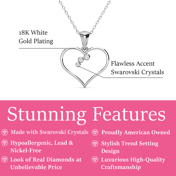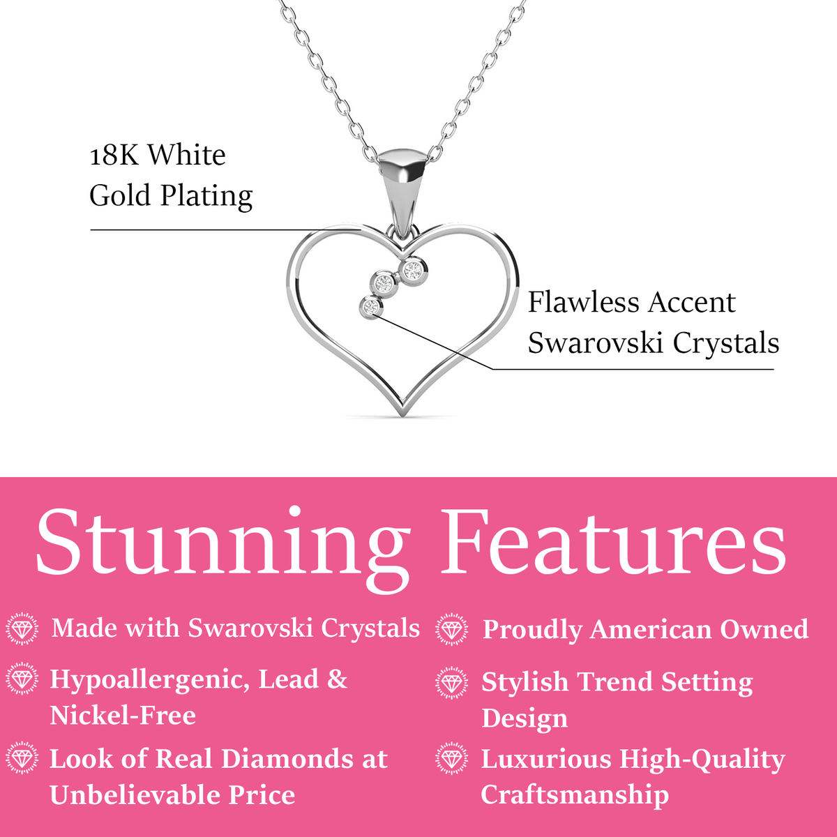 Valentina 18k White Gold Plated Silver Heart Necklace with Swarovski Crystals