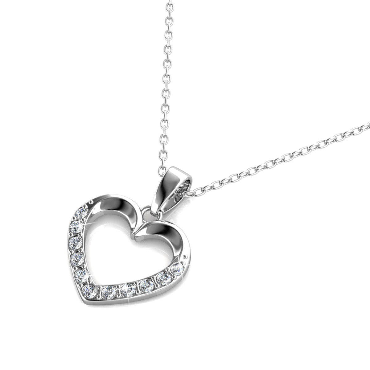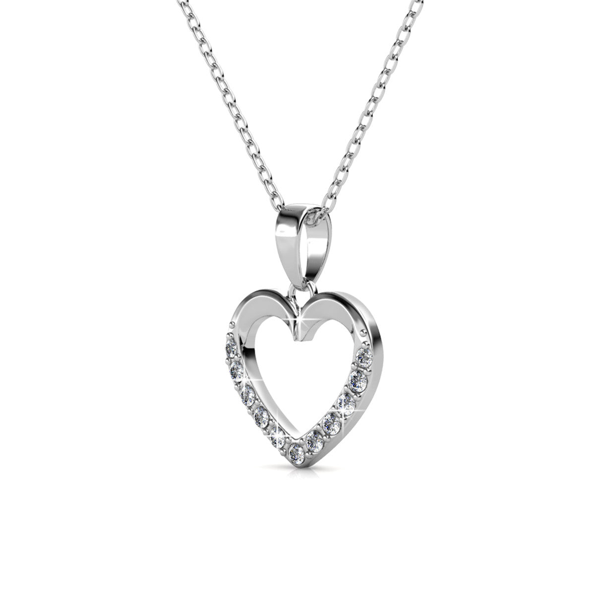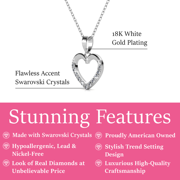Chelsea 18k White Gold Plated Silver Heart Necklace with Swarovski Crystals