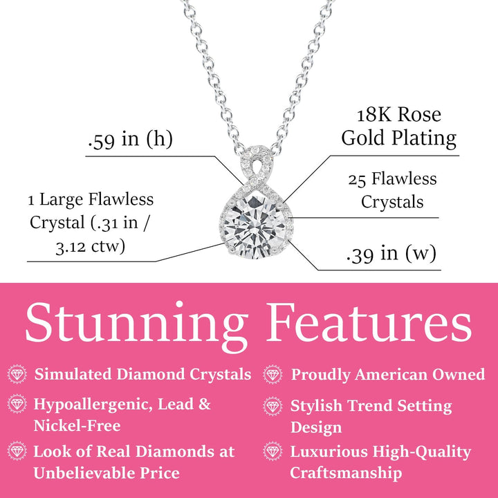 Alessandra 18k White Gold Plated Infinity Halo Pendant Necklace with Simulated Diamond Crystals