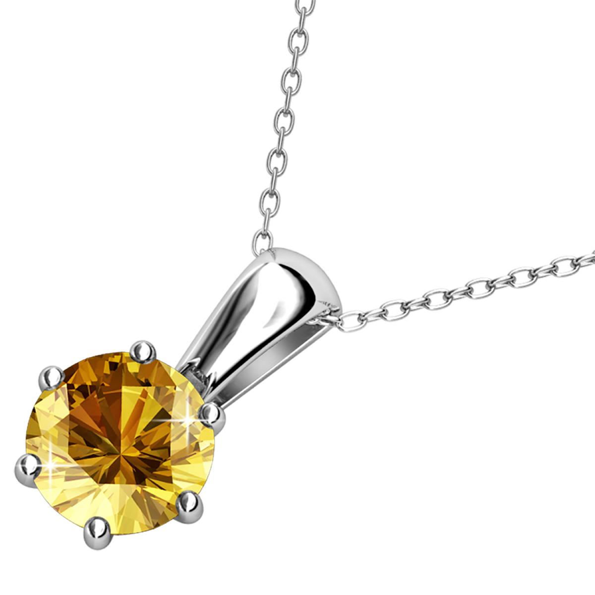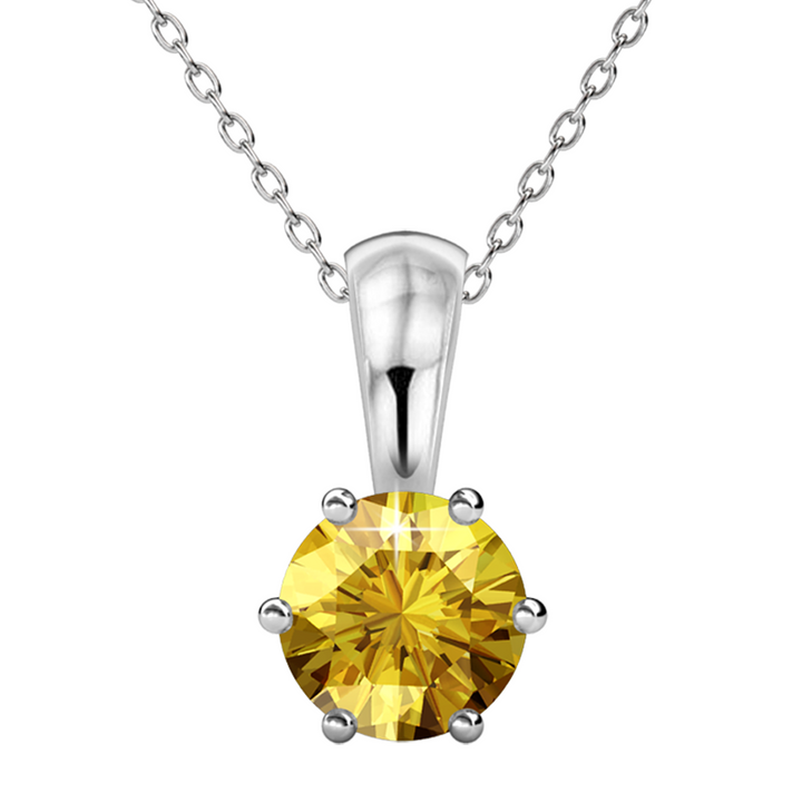 November Birthstone Citrine Necklace 18k White Gold Plated Solitaire Necklace with 1CT Swarovski Crystal