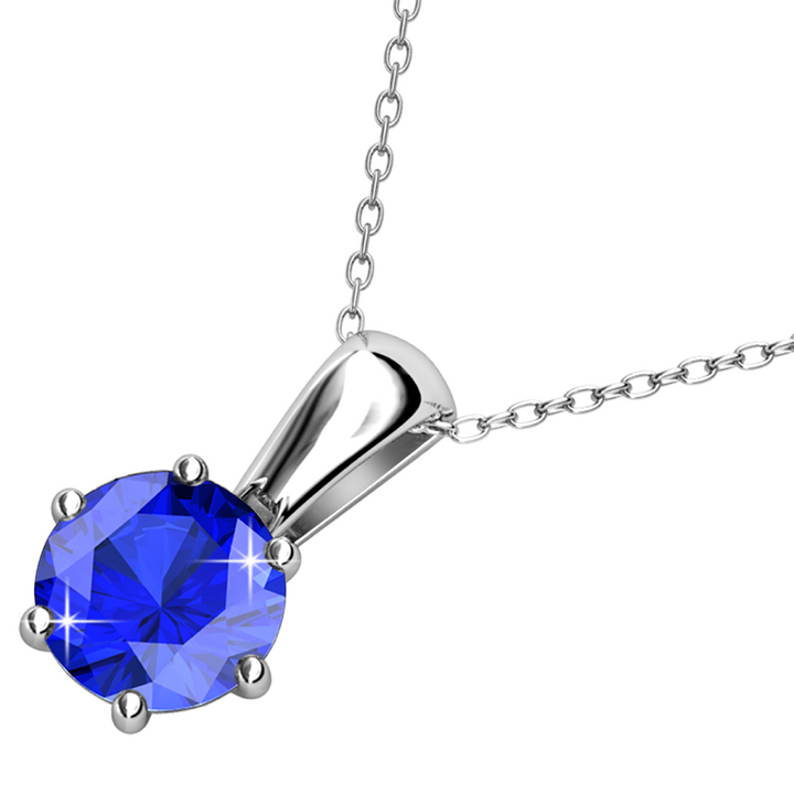 September Birthstone Sapphire Necklace 18k White Gold Plated Solitaire Necklace with 1CT Swarovski Crystal