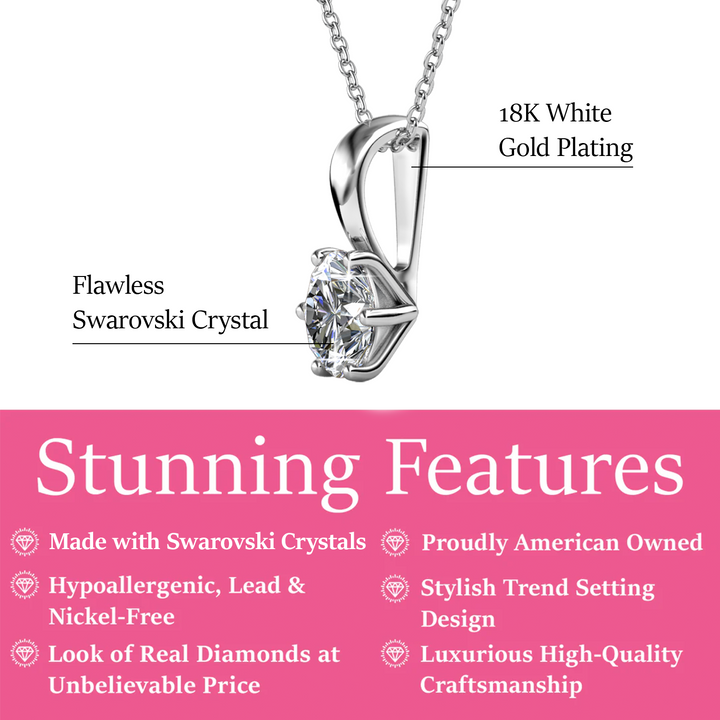 April Birthstone Diamond Necklace 18k White Gold Plated Solitaire Necklace with 1CT Swarovski Crystal