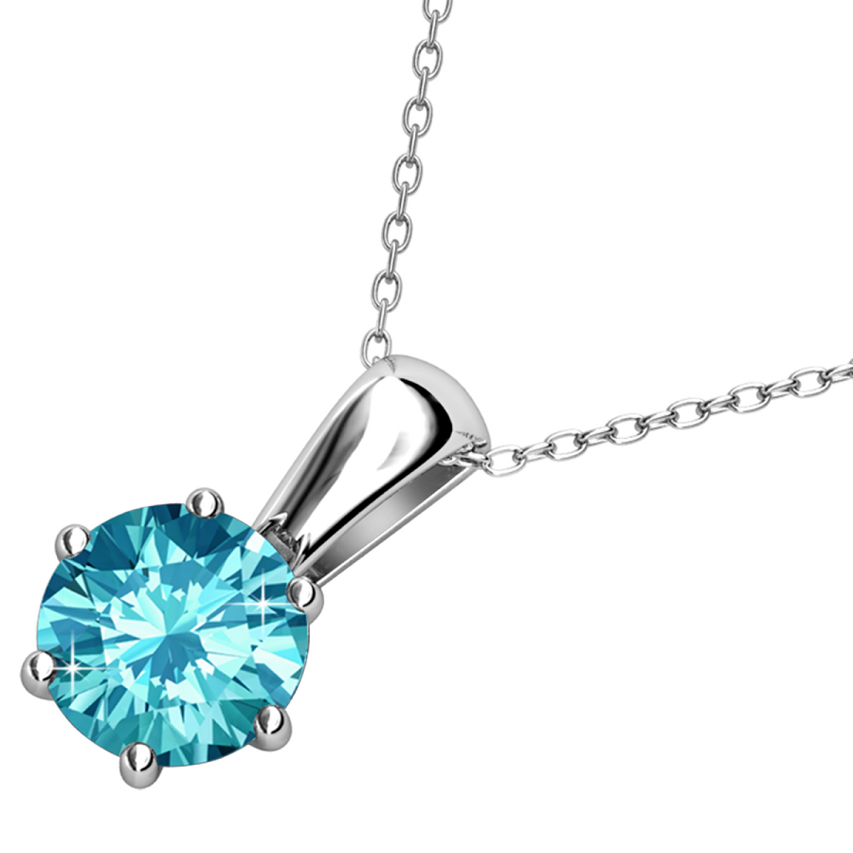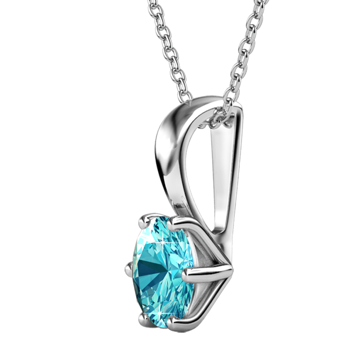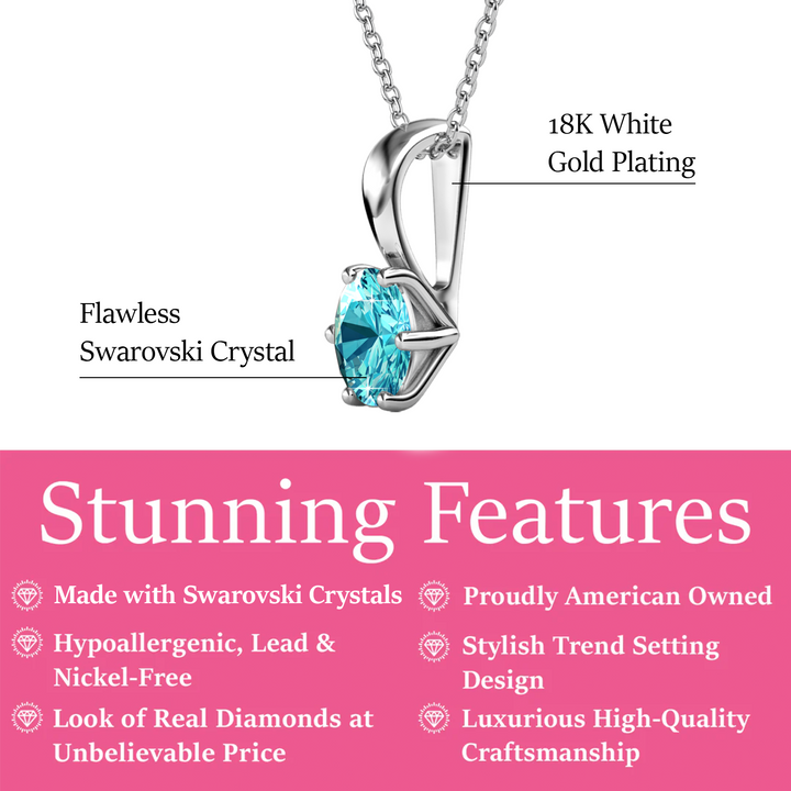 March Birthstone Aquamarine Necklace 18k White Gold Plated Solitaire Necklace with 1CT Swarovski Crystal
