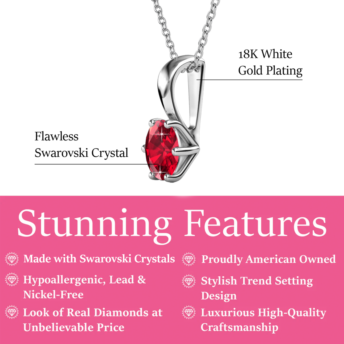 January Birthstone Garnet Necklace 18k White Gold Plated Solitaire Necklace with 1CT Swarovski Crystal
