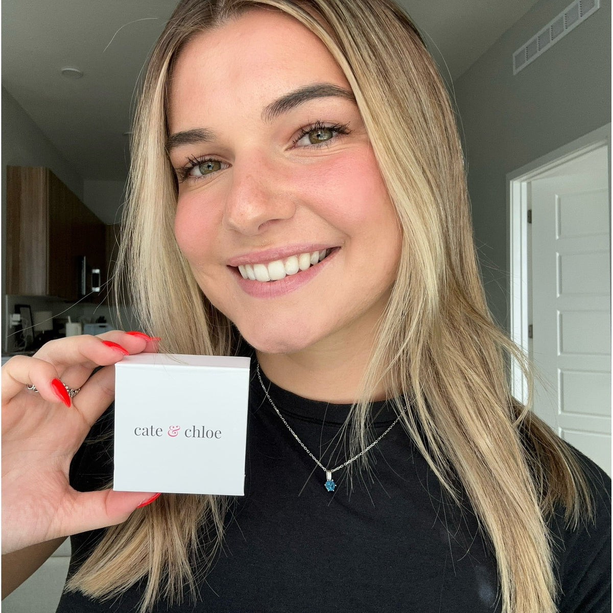 This Birthstone Necklace by Cate & Chloe is a timeless tribute to individuality and elegance. Designed as a universal keepsake, each necklace features a brilliant 1CT Swarovski gemstone crystal tailored to your birth month—ranging from Garnet’s rich red to Blue Topaz’s icy brilliance. With a clean solitaire setting and feminine scale, it offers both a personal touch and a versatile design that complements any wardrobe. Whether commemorating a birthday, anniversary, or cherished memory, this necklace is a meaningful gift and an effortless everyday treasure.