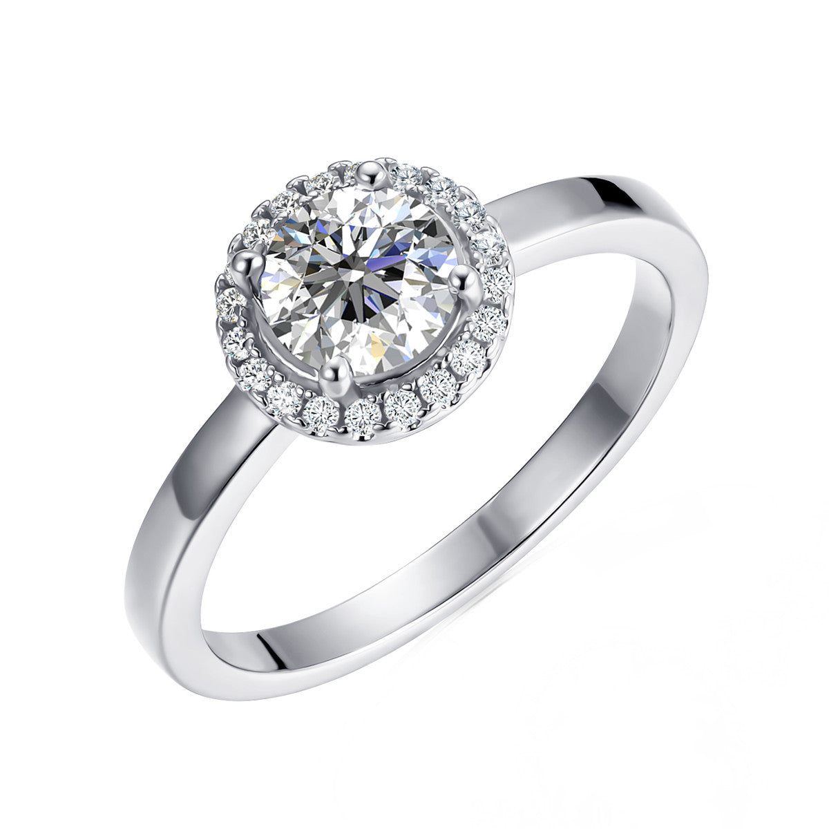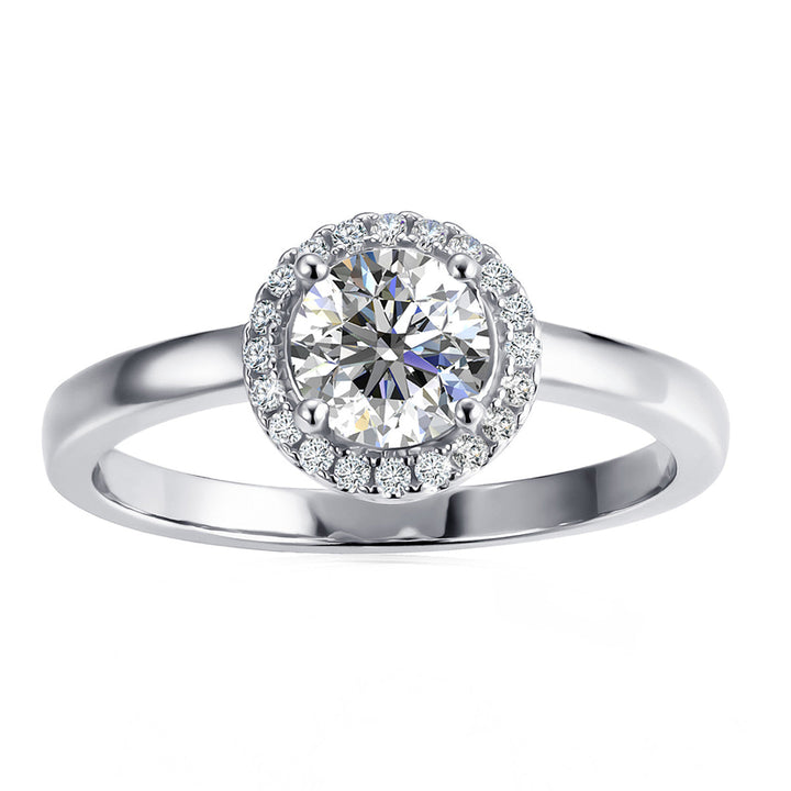 Moissanite by Cate & Chloe Cora 1tcw Round Cut 925 Sterling Silver 18K White Gold Plated Forever Engagement Ring