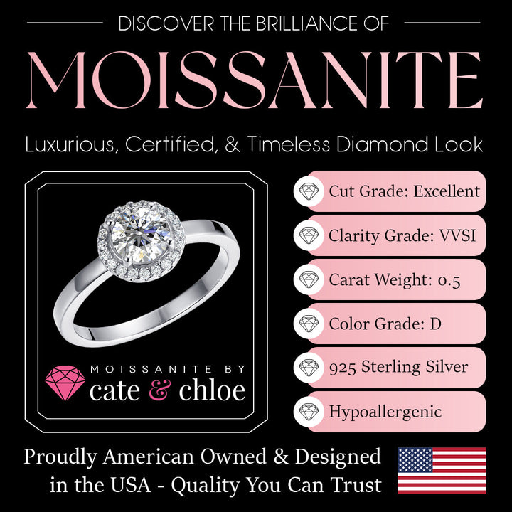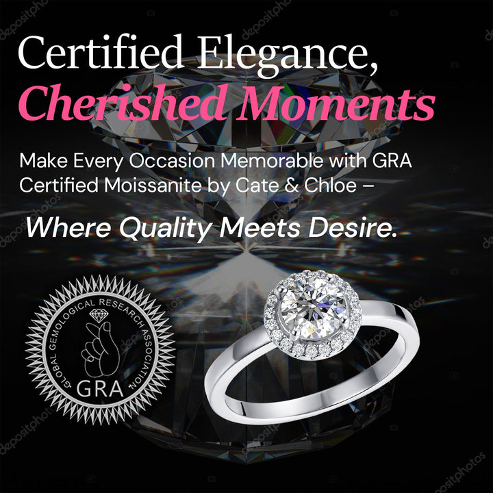 This Cora Engagement Ring by Cate & Chloe is a radiant expression of love and commitment. Featuring a brilliant 1ct moissanite center stone surrounded by 19 delicate accent stones, the design exudes classic elegance with a modern twist. The harmonious balance between bold sparkle and refined detailing makes Cora a timeless choice for the woman who cherishes grace, brilliance, and everlasting beauty.