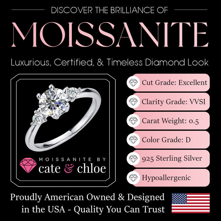 This Sarah Engagement Ring by Cate & Chloe is a beautiful tribute to enduring love. Anchored by a 1ct moissanite center stone and flanked by two graceful accent stones, Sarah offers brilliant clarity and timeless symmetry. Whether it's your proposal, anniversary, or everyday symbol of devotion, this ring radiates refined charm and heartfelt significance.