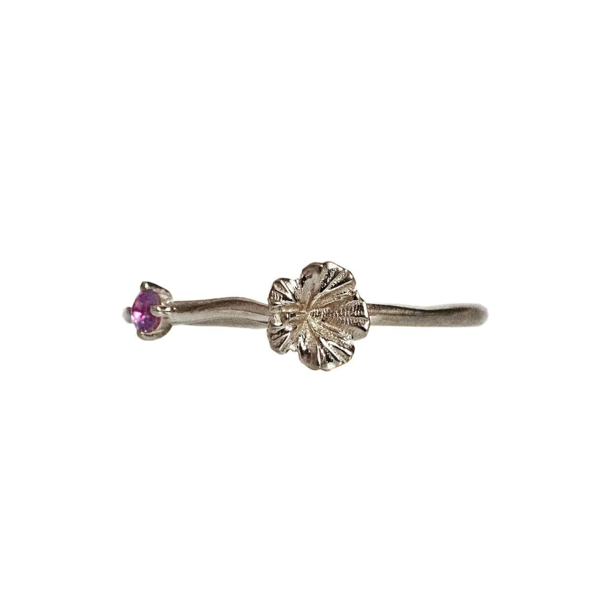Tippy's special collection of birth flower rings are inspired by the love of wearing something meaningful. Each birth flower is adorned with that month's birthstone. February's birth flower is Violet and the birthstone is amethyst.