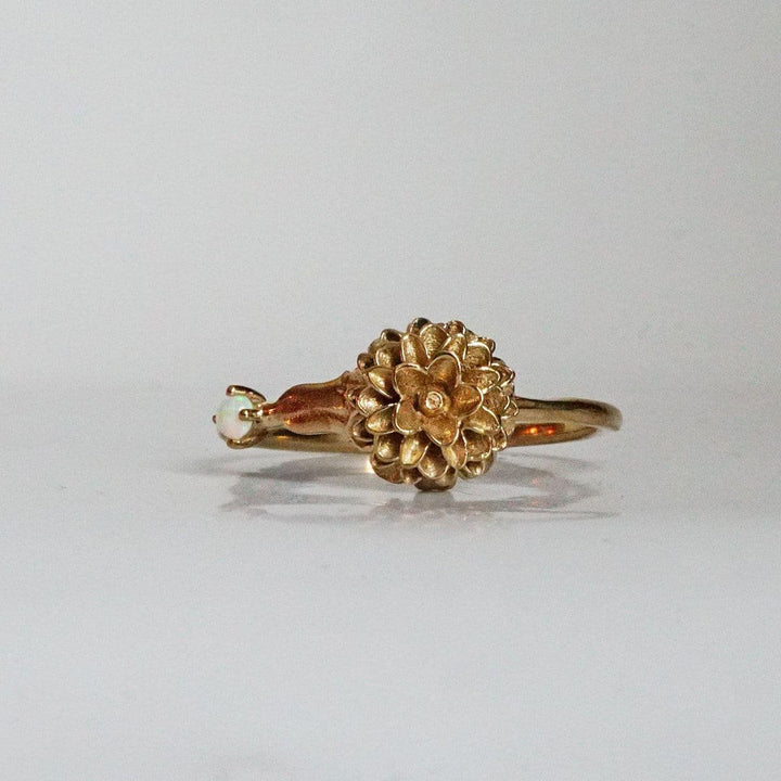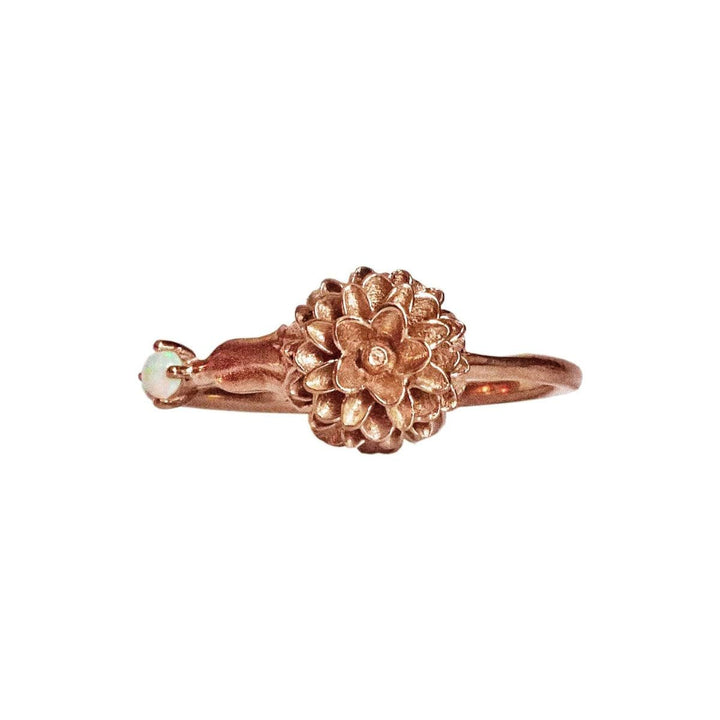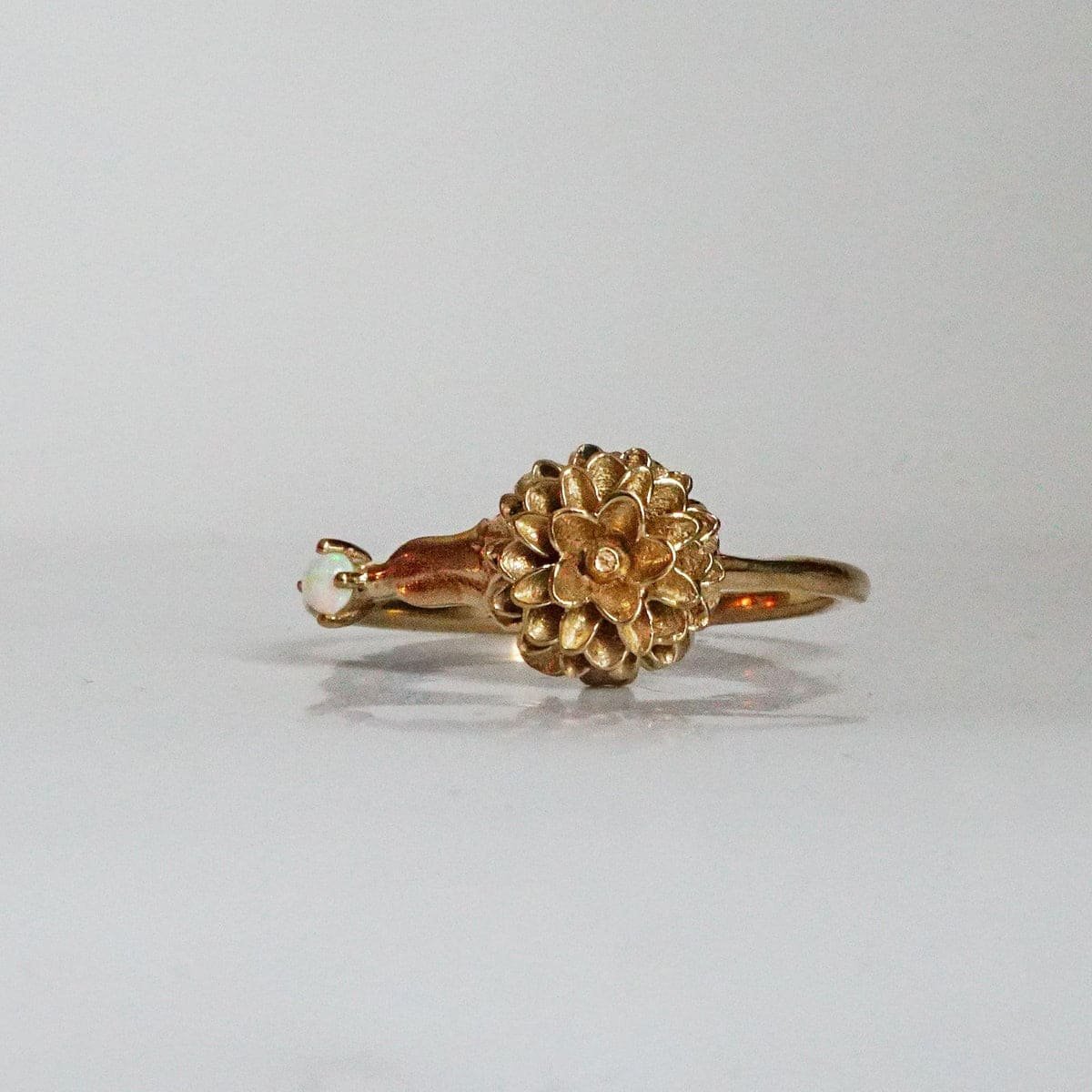 Tippy's special collection of birth flower rings are inspired by the love of wearing something meaningful. Each birth flower is adorned with that month's birthstone. October's birth flower is Marigold and the birthstone is opal.