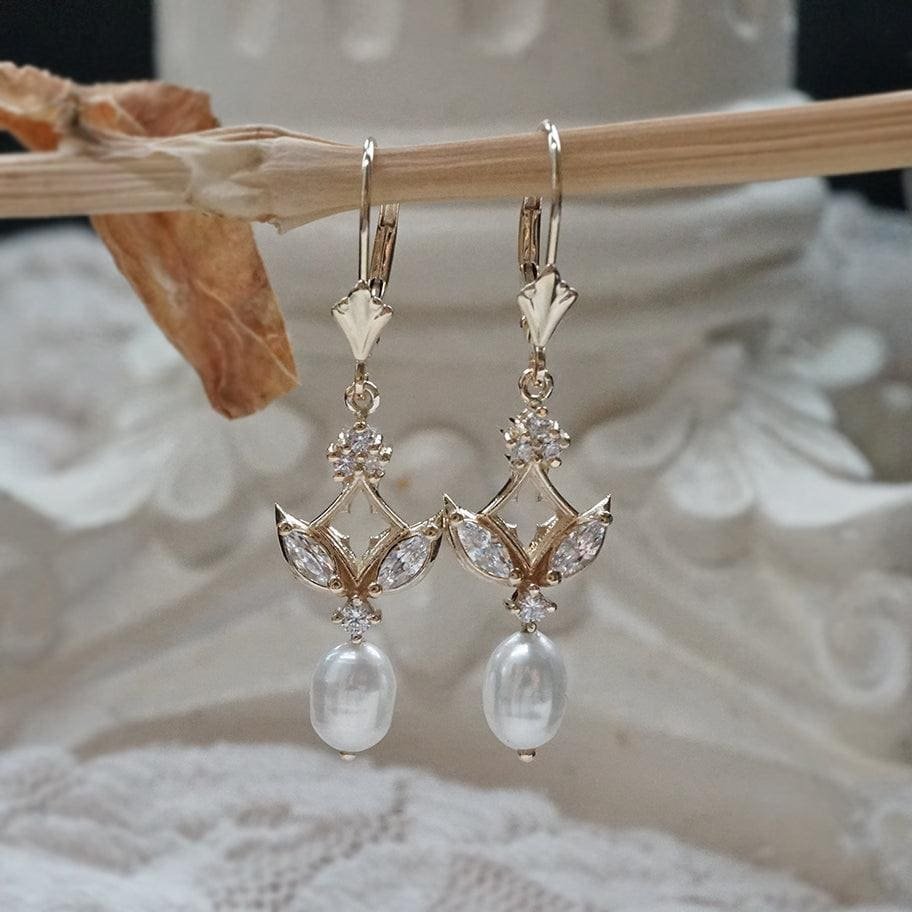 14k yellow gold with natural pearls and cubic zirconia or 0.43ctw diamonds. Also available in gold vermeil, silver and 14k rose or white gold. Dimensions: Total length measures 38mm.
