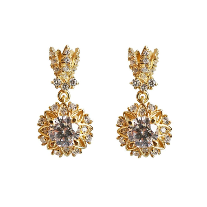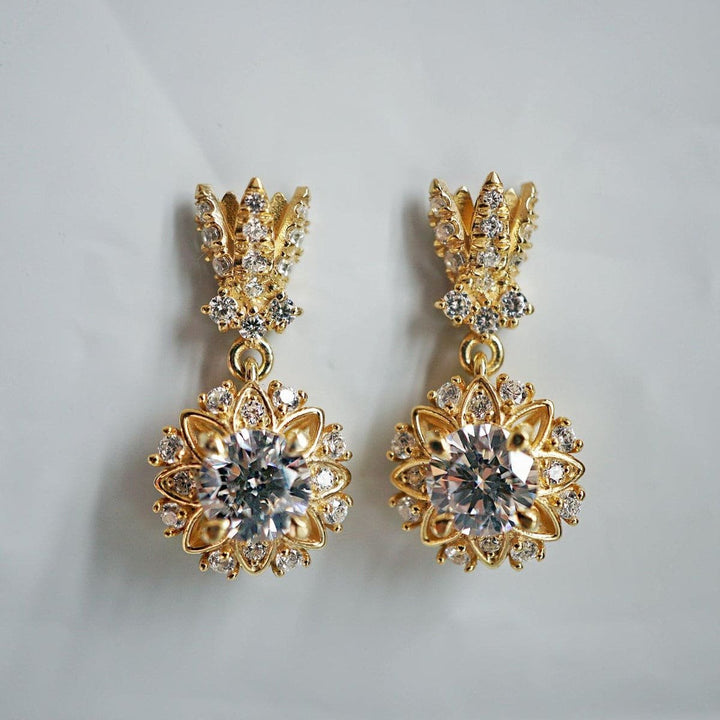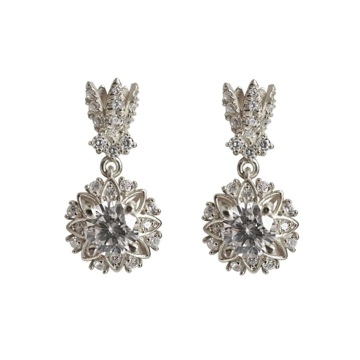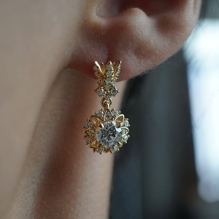 As Ephesians 4:2 reminds us, 'Be completely humble and gentle; be patient, bearing with one another in love.' Inspired by the serene beauty of St. Patrick's Church in New York City, these earrings symbolize love and peace. The Alegra Sapphire Diamond Earrings feature a pair of brilliant-cut moissanite, encrusted with small natural white diamonds.