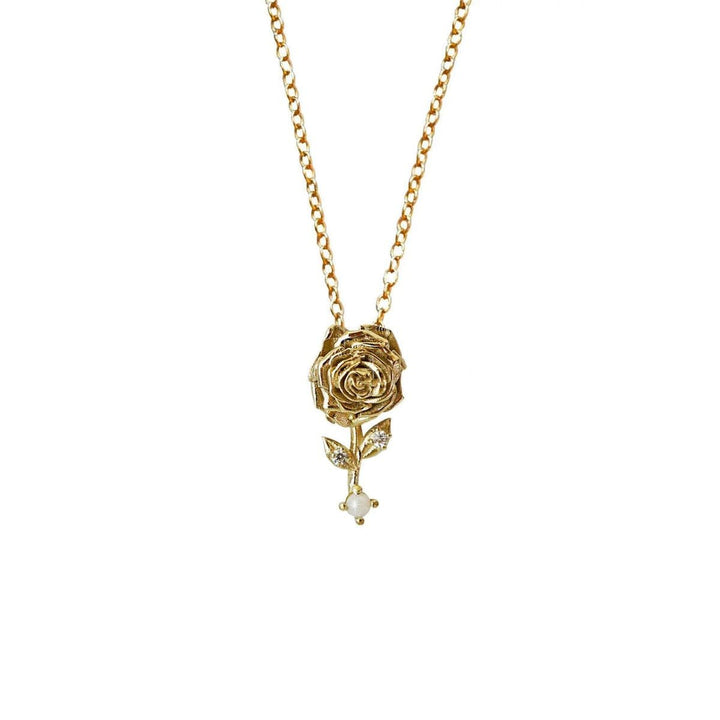 Tippy's special collection of birth flower necklaces are inspired by the love of wearing something meaningful. Each birth flower is adorned with that month's birthstone. June's birth flower is a rose and the birth stone is a pearl.