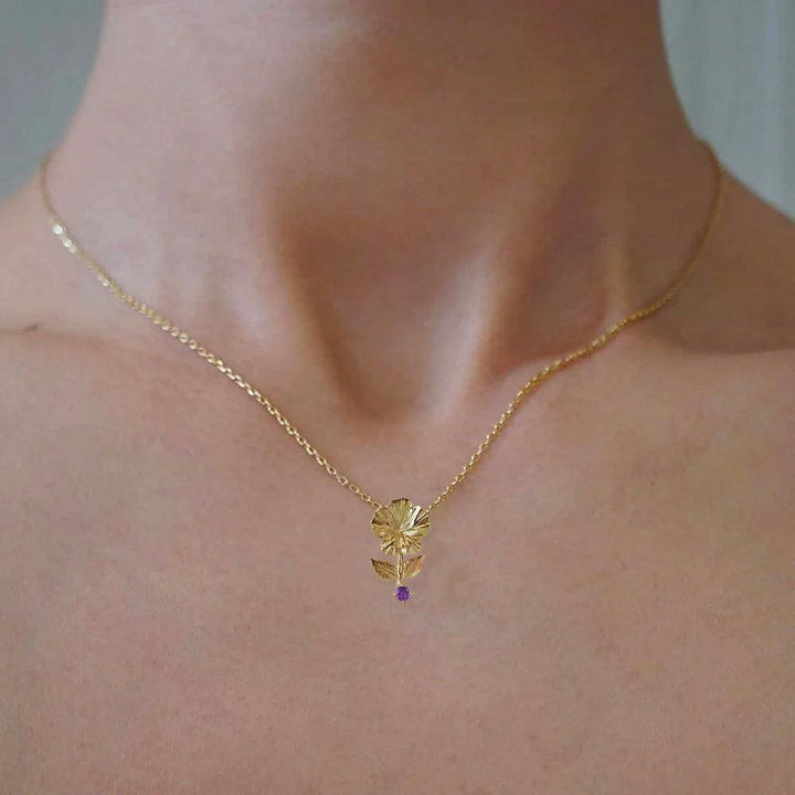Introducing Tippy's exquisite Birth Flower Necklaces, a collection inspired by the profound desire to wear something deeply meaningful and personal. Each pendant in this special collection features a meticulously crafted representation of a birth flower, intertwined with the brilliance of that month's birthstone. In the case of February, the delicate and cherished Violet takes center stage, elegantly complemented by the enchanting amethyst birthstone. The combination of the February Violet and amethyst creates a stunning, one-of-a-kind necklace that encapsulates the essence of the individual and the month they hold dear. Celebrate life's moments and meaningful connections with Birth Flower Necklaces, each piece a wearable testament to the unique beauty and significance of the one who wears it.