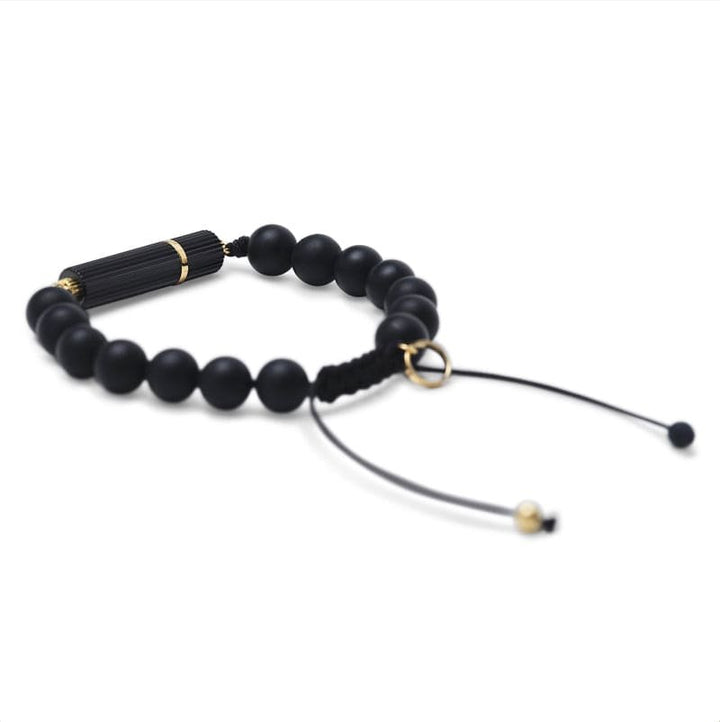 Imbued with protection and good fortune, the Matte Onyx Bead Bracelet features a barrel locket combined with 8mm matte-black beads. The barrel can be unscrewed to hold personal promises, intentions, goals, or any message you choose to write on Vision Of Self intention paper. Alternatively, you can place whatever holds significance to you inside.