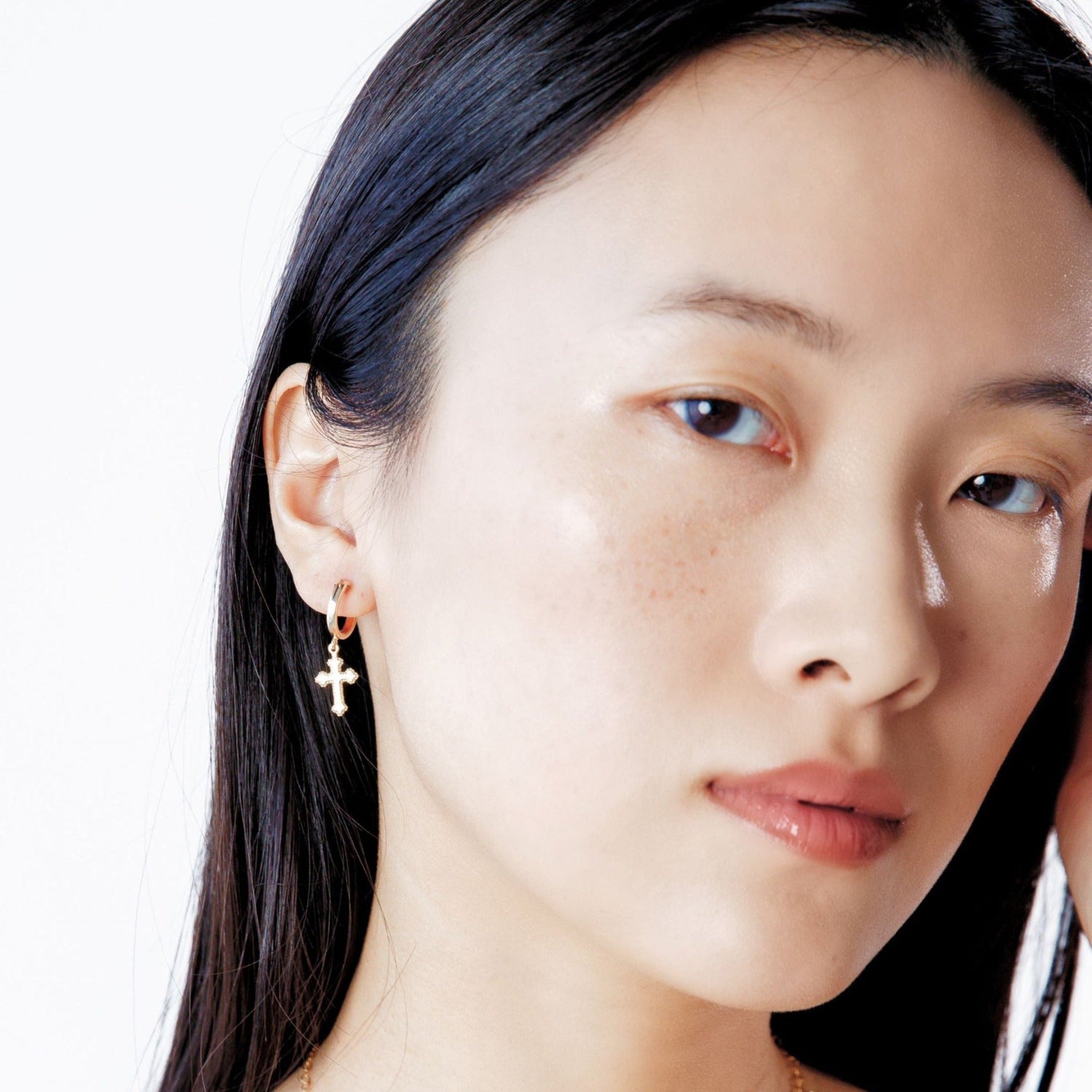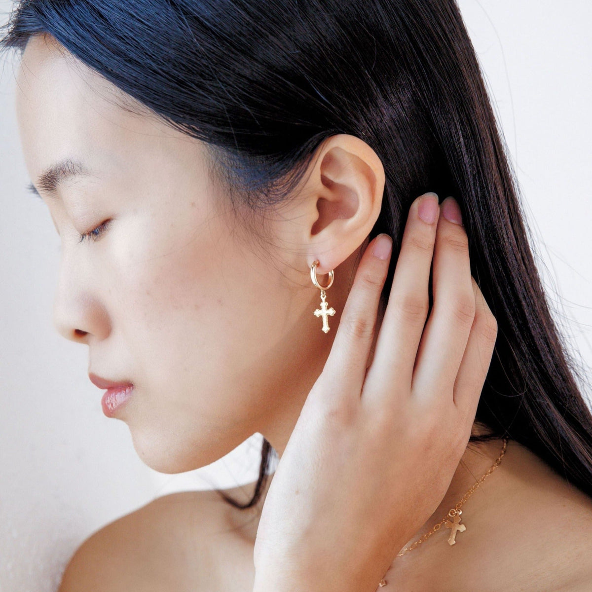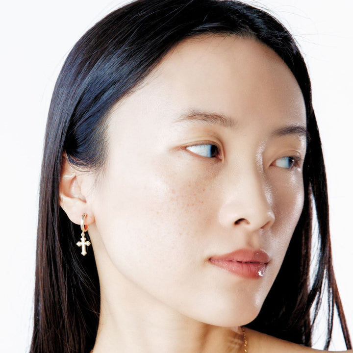 These Cross Hoop Earrings by Erin Fader are a modern take on spiritual style, blending minimalist hoops with bold cross charms. At 2.5 inches in length, these lightweight, waterproof earrings deliver movement and meaning, perfect for layering with other cross-themed pieces for a curated faith-forward look.