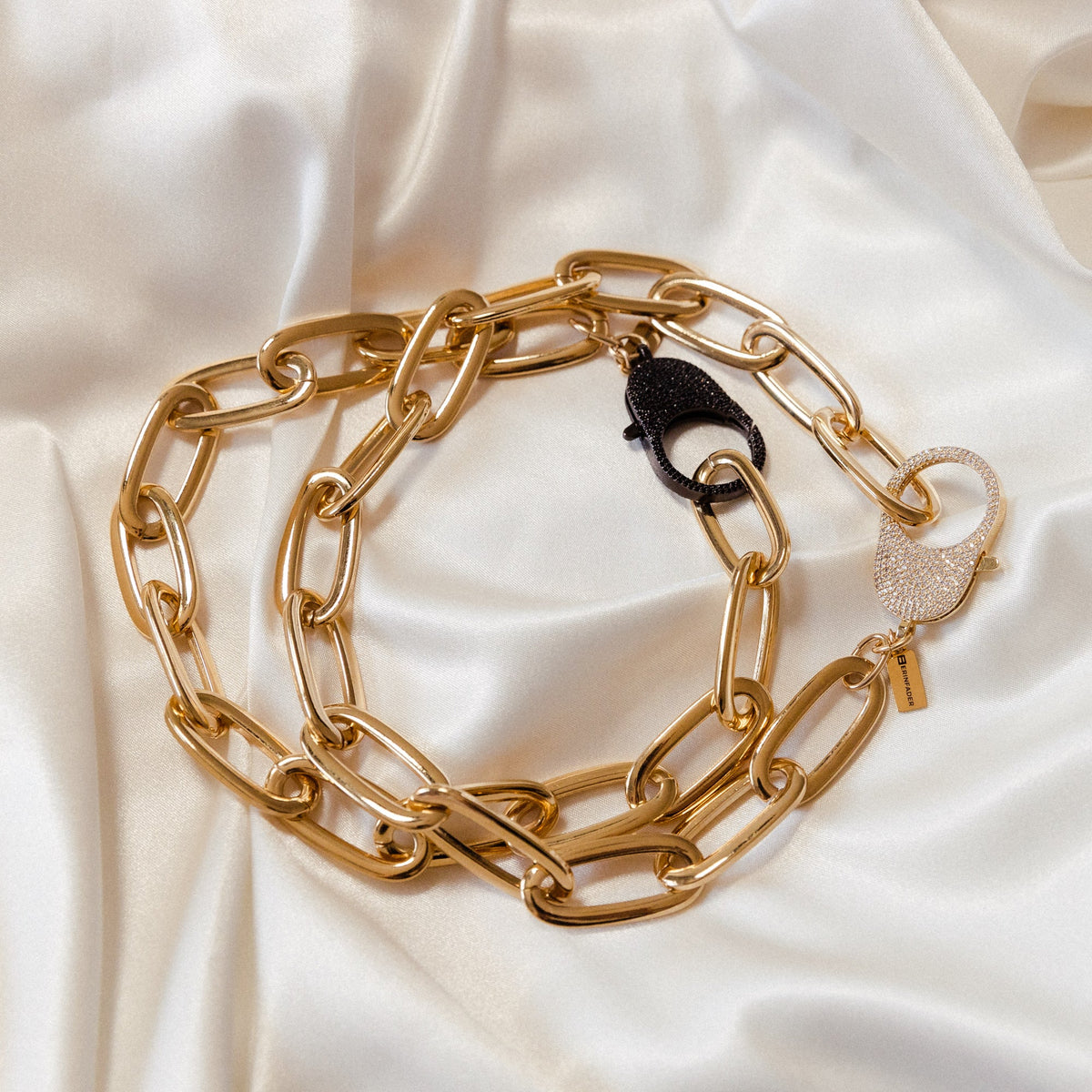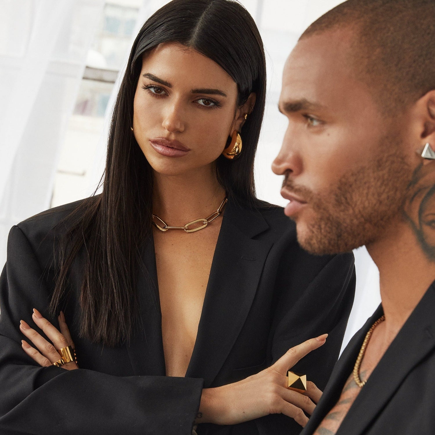 The Flex Choker in Gold by Erin Fader is bold, luxe, and unapologetically powerful. With its 24k gold overlay chain and a CZ-inset pendant clasp, this piece commands attention while remaining fluid and wearable. Its wide, glimmering silhouette (15mm) hugs the neckline with radiant drama, making it a standout for both layering and solo styling. Made for the modern muse who flexes her own rules.