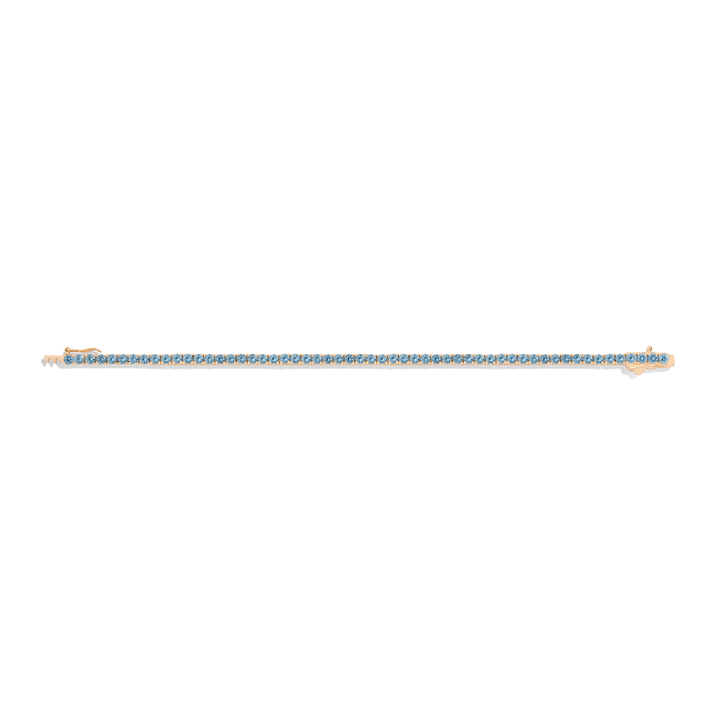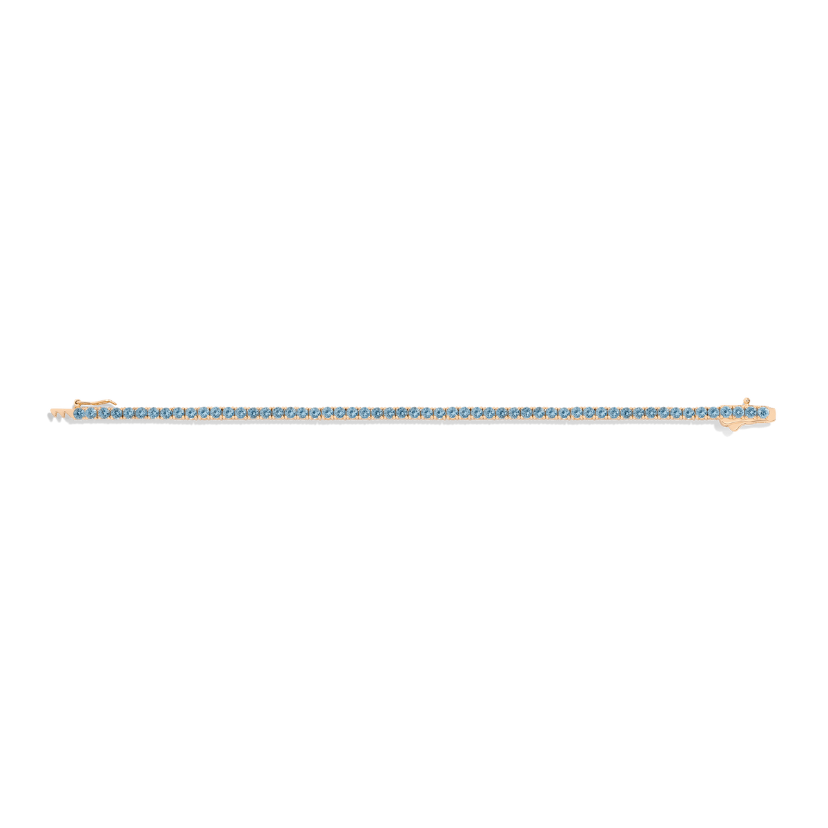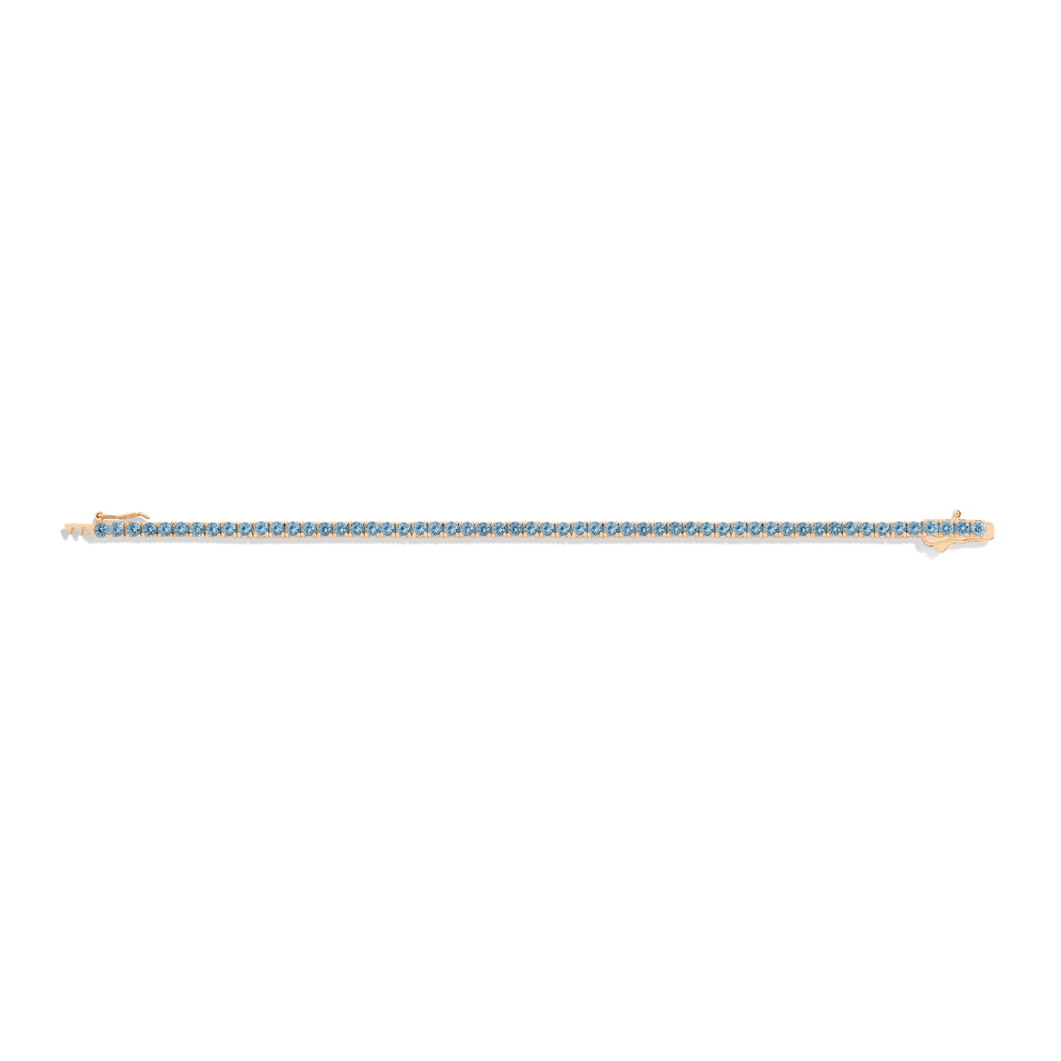 Handcrafted in vermeil with lab grown round aquamarines (2.6mm), totaling 6 carats. Width: 3.5mm, thickness: 5mm. Length: 6.5' or 7'. Weight: 11g. Prong setting with box clasp and safety hook.