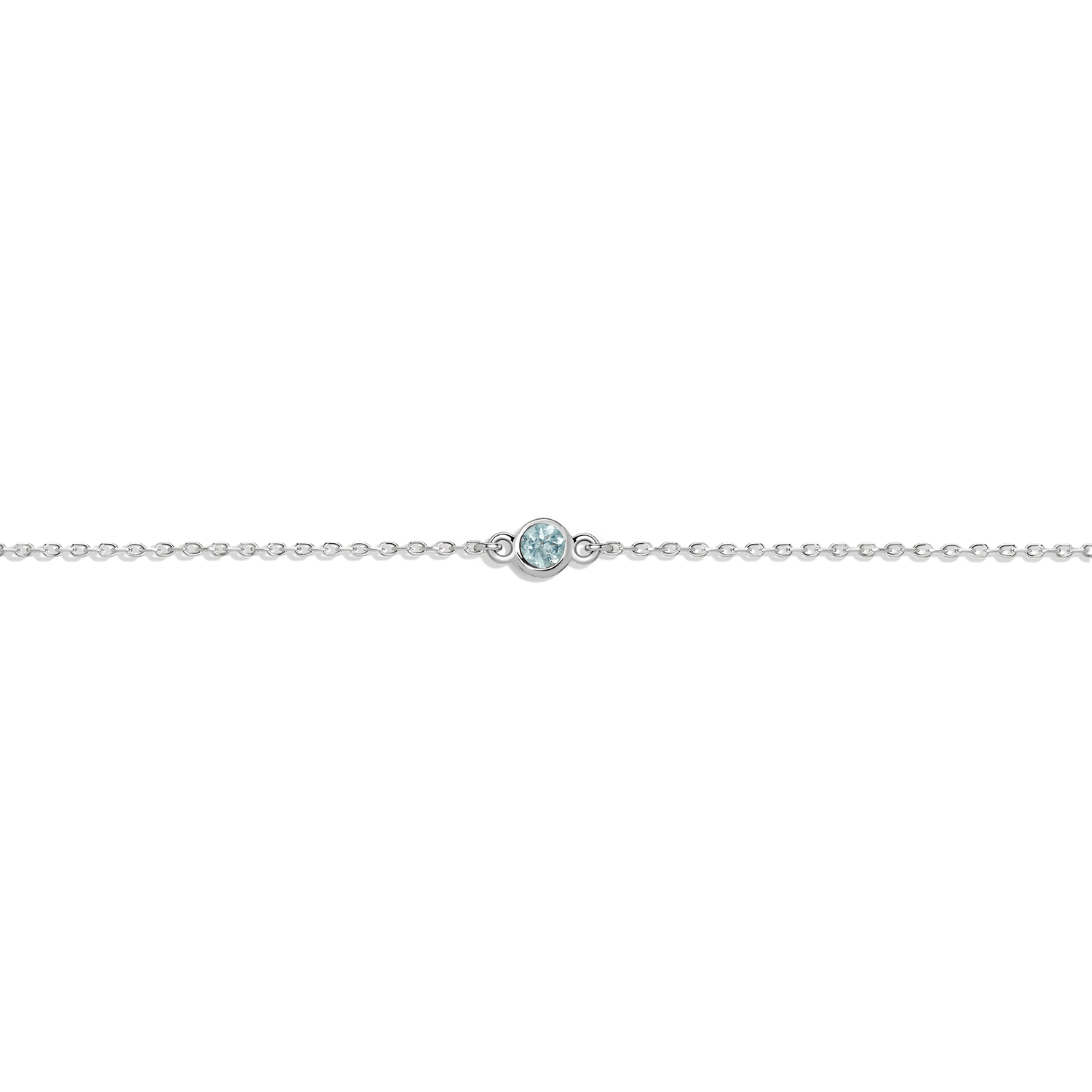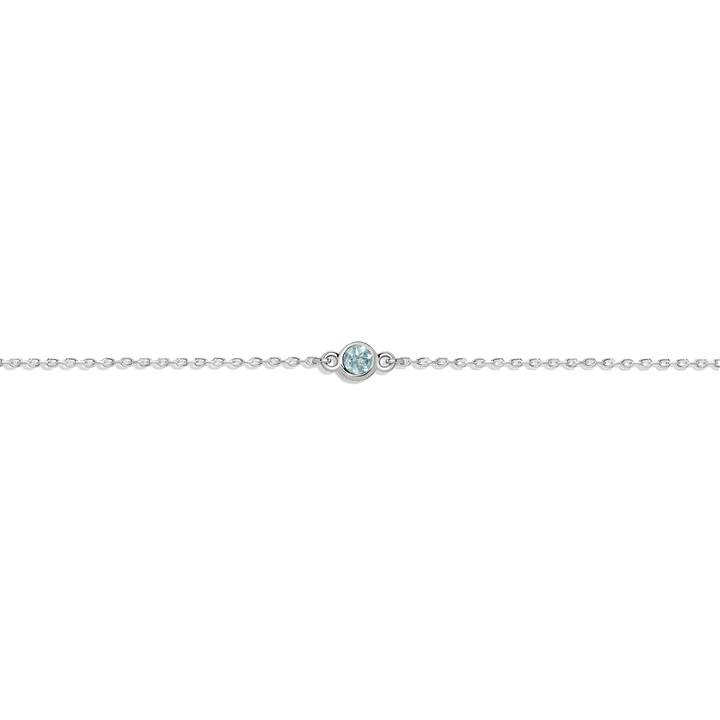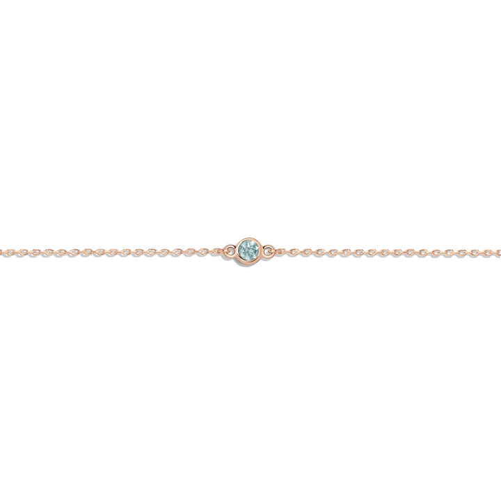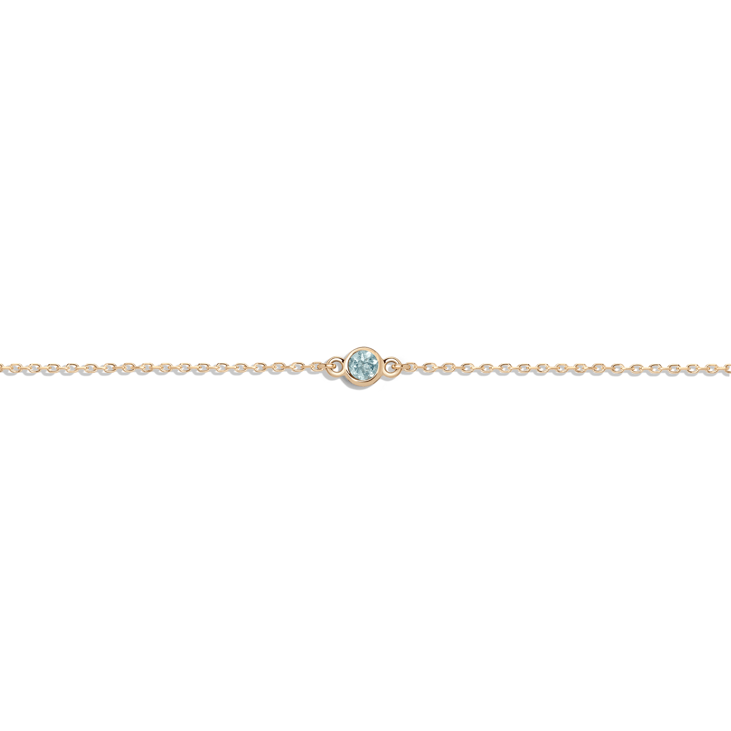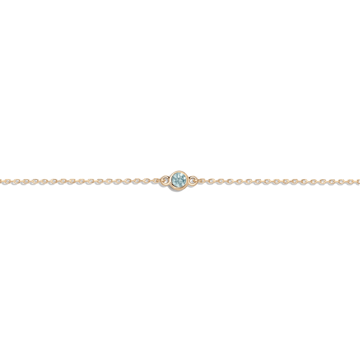 Handcrafted in 14-karat gold with one 3mm birthstone. Chain length is 6.5'' with jump rings at 6'' and 6.5''. Dimensions: 7mm width, 4mm length, 2mm thickness. Weight: 0.7–0.8g.