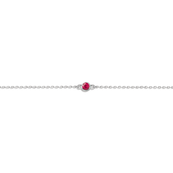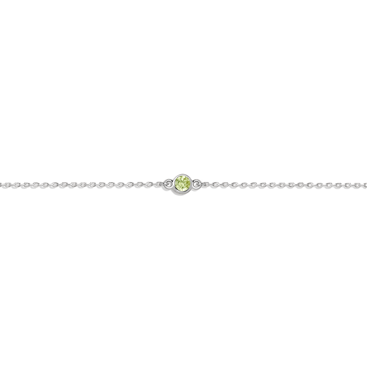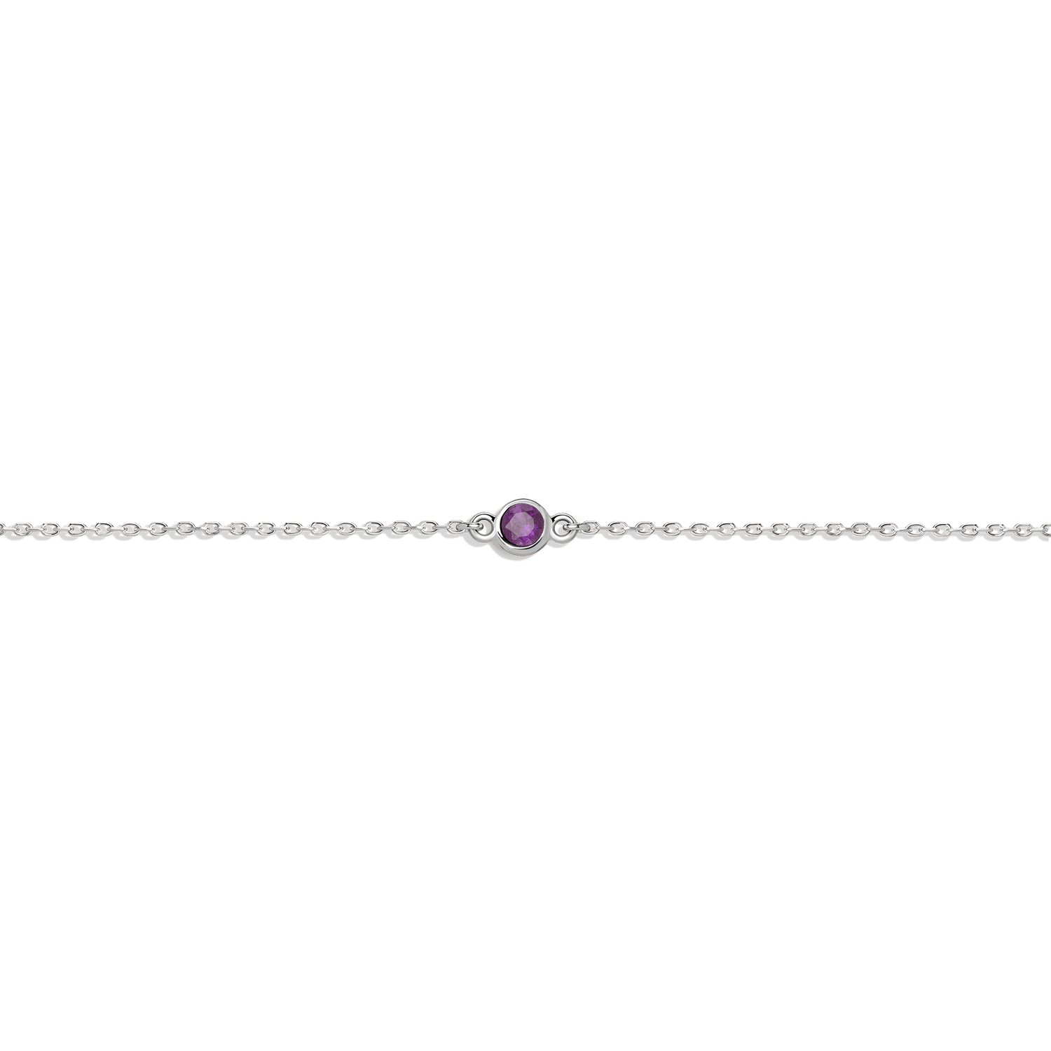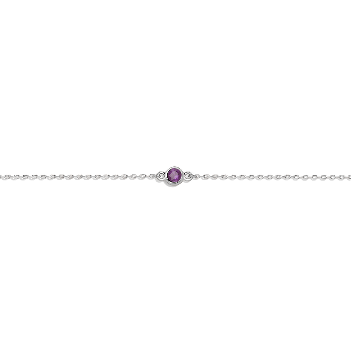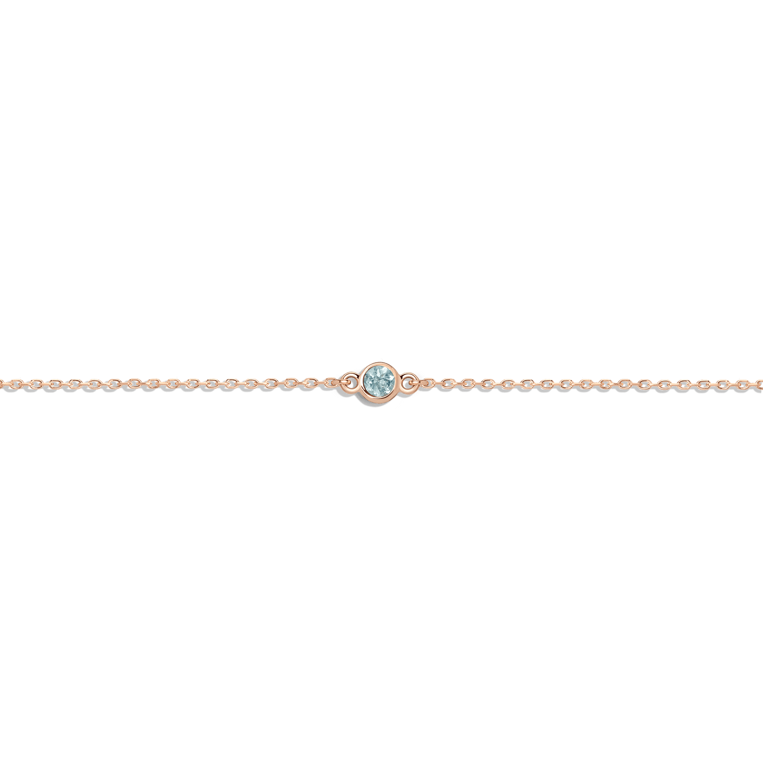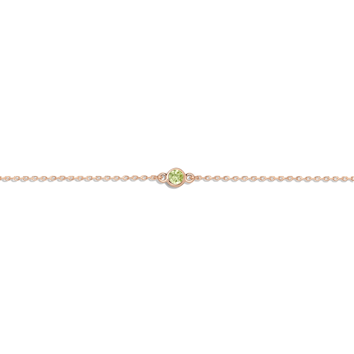 Handcrafted in 14-karat gold with one 3mm birthstone. Chain length is 6.5'' with jump rings at 6'' and 6.5''. Dimensions: 7mm width, 4mm length, 2mm thickness. Weight: 0.7–0.8g.