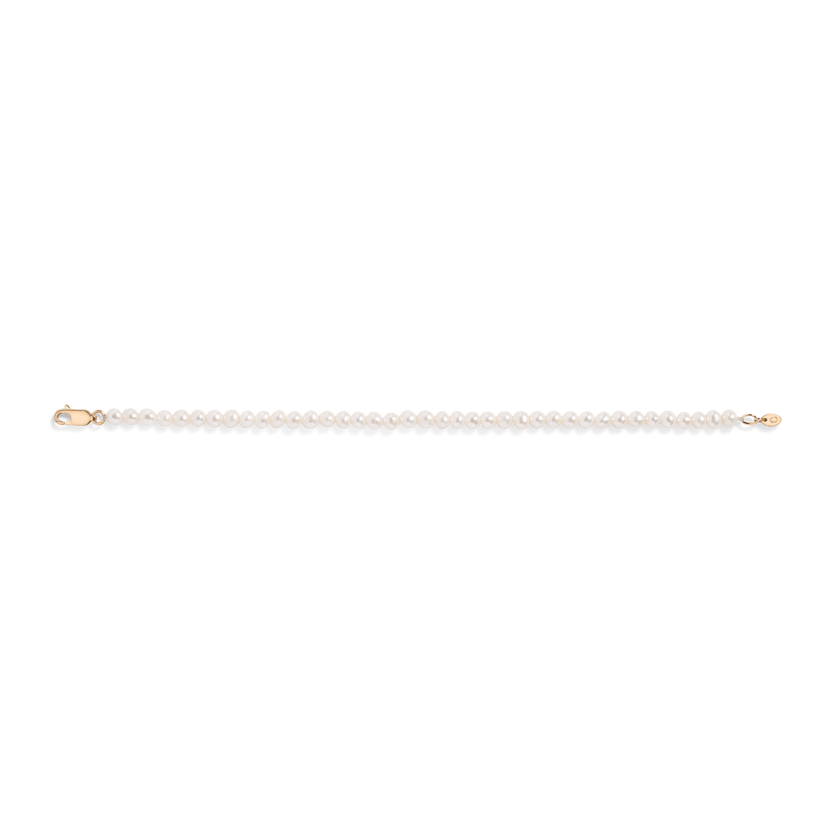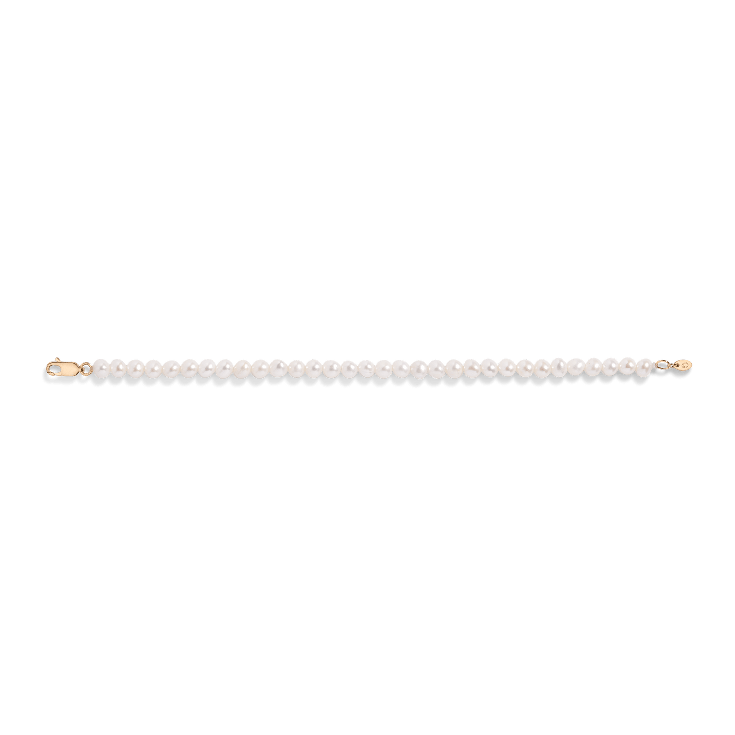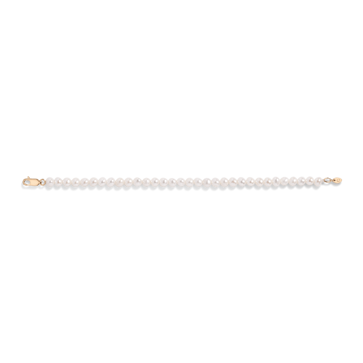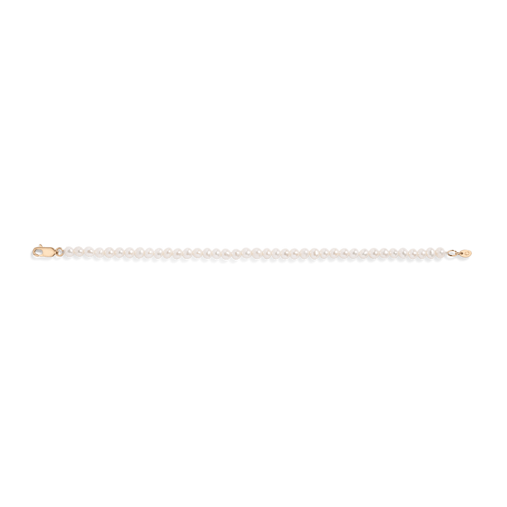 Handcrafted in 18k gold with 4mm AAA freshwater cultured pearls. Available lengths: 6.5', 7', or 7.5'. Weight: 7g. Secured with a lobster clasp.