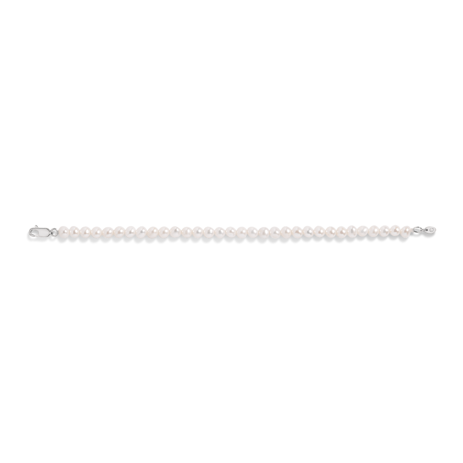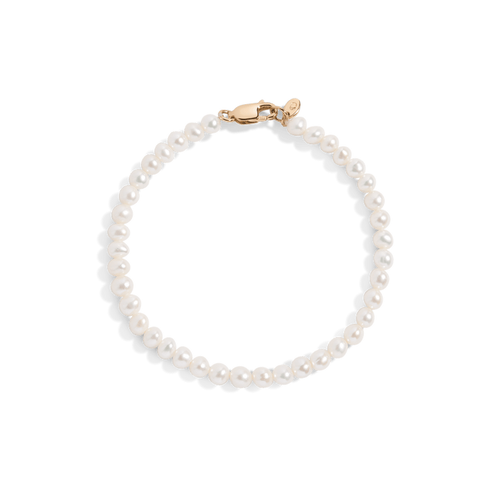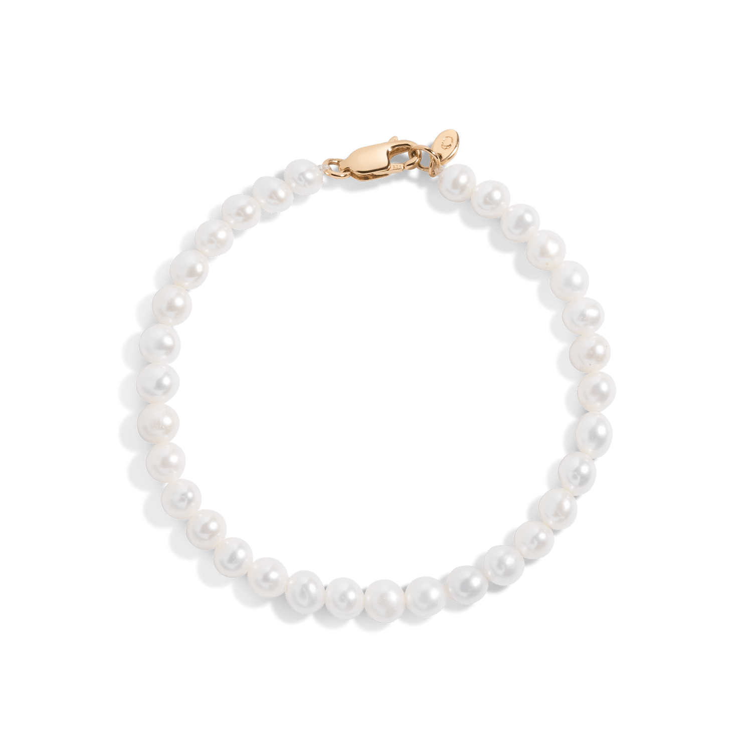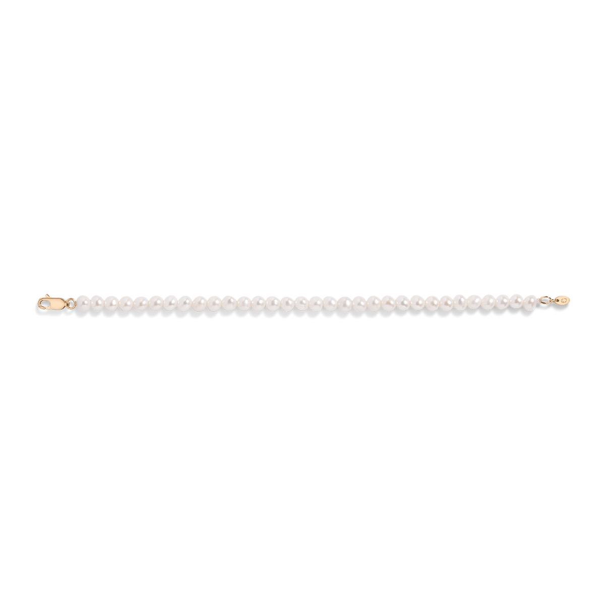 Handcrafted in 18k gold with 4mm AAA freshwater cultured pearls. Available lengths: 6.5', 7', or 7.5'. Weight: 7g. Secured with a lobster clasp.