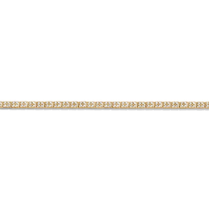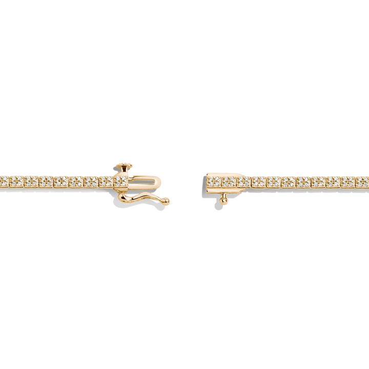 Handcrafted in recycled 18k gold with 228–264 SI3 clarity round brilliant diamonds (0.46–0.53 total carat weight depending on size). Width: 2.2mm. Length options: 6.5', 7', or 7.5'. Weight: 4.4g–6.1g. Secured with a box clasp closure.