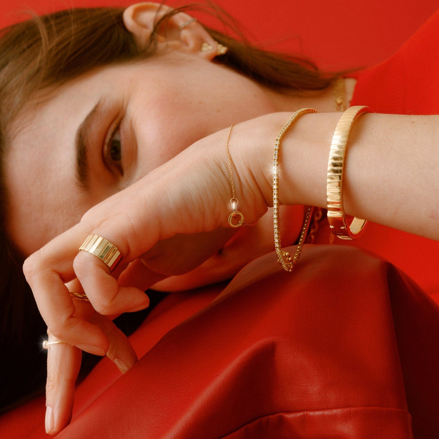 This Diamond Connection Bracelet by Aurate is small but luminous, anchoring strength and sentiment in one delicate design. Featuring two interlinked circles—one gleaming, one set with 30 sparkling diamonds—it’s an effortless symbol of bonds that matter. Ideal for stacking or standing alone with a quiet power.