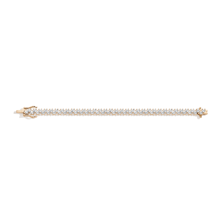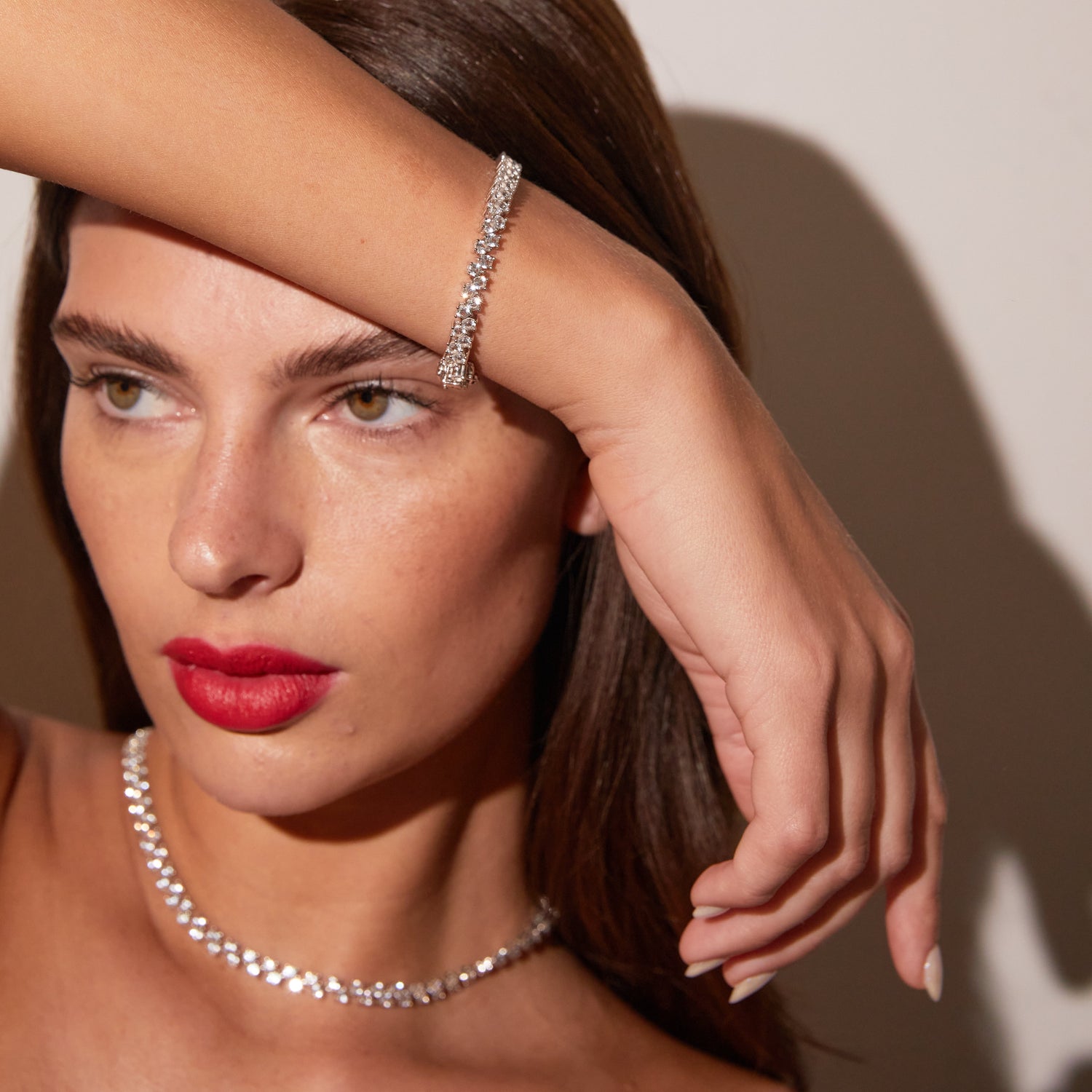 This Floating Lab Grown White Sapphire Tennis Bracelet by Aurate radiates opulence and elegance. Featuring 66 prong-set lab grown white sapphires, this bracelet shimmers with intentional brilliance, creating the illusion of floating stones along your wrist. It's a contemporary take on a classic tennis silhouette, designed for maximum sparkle and movement. Ideal as a standalone piece or layered with sleek bangles, it offers sophistication with substance.
