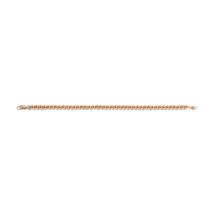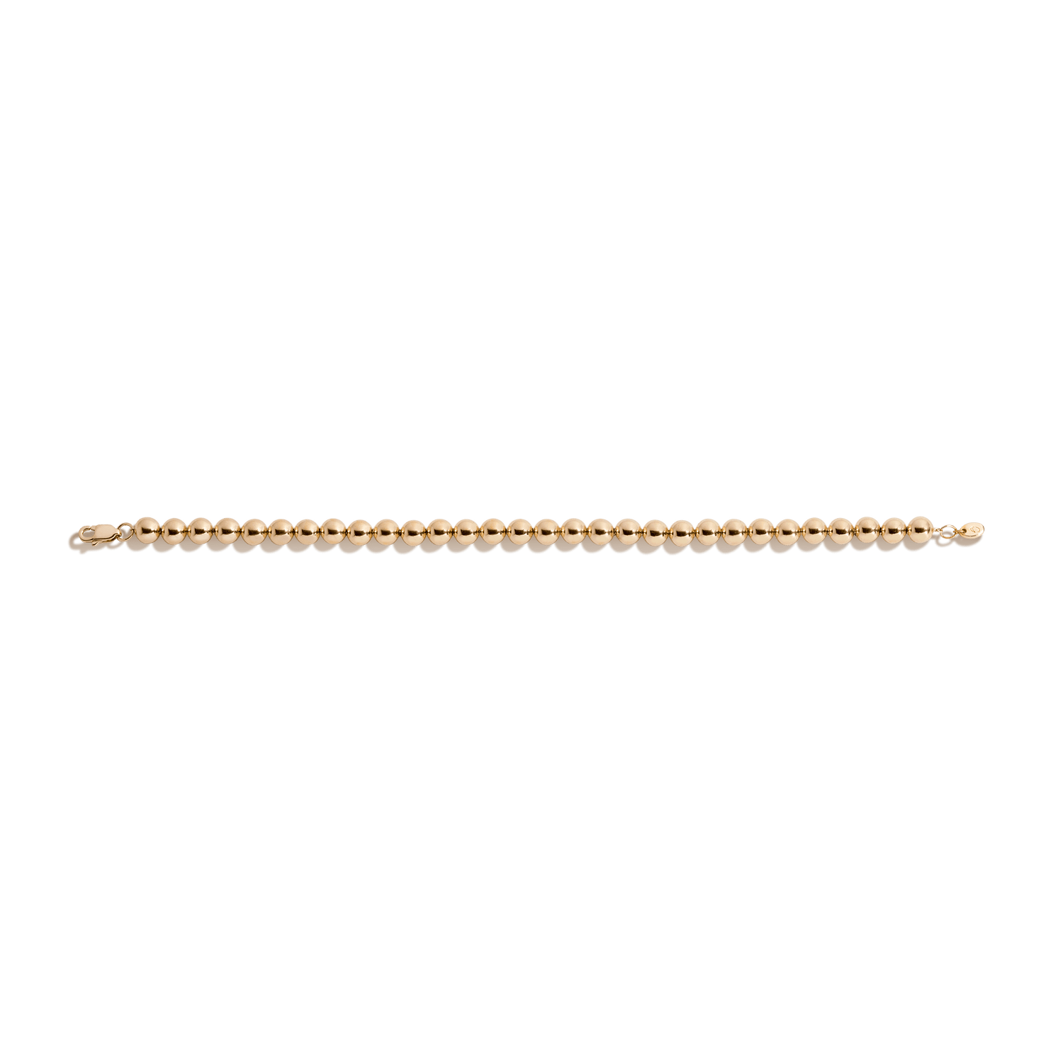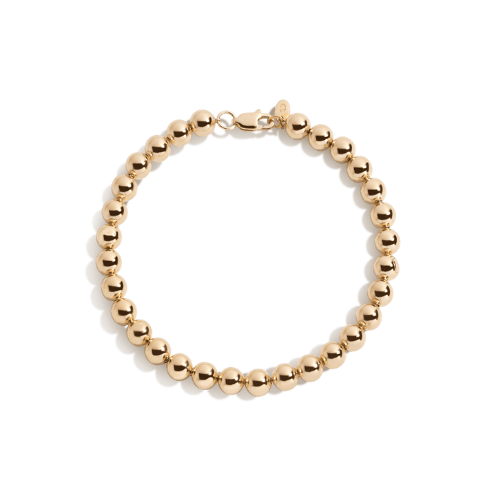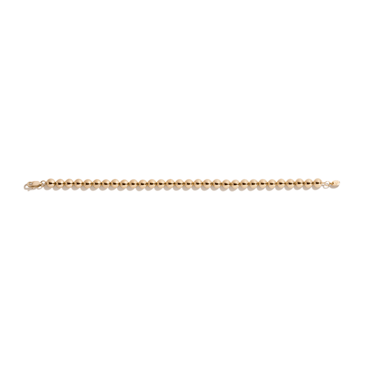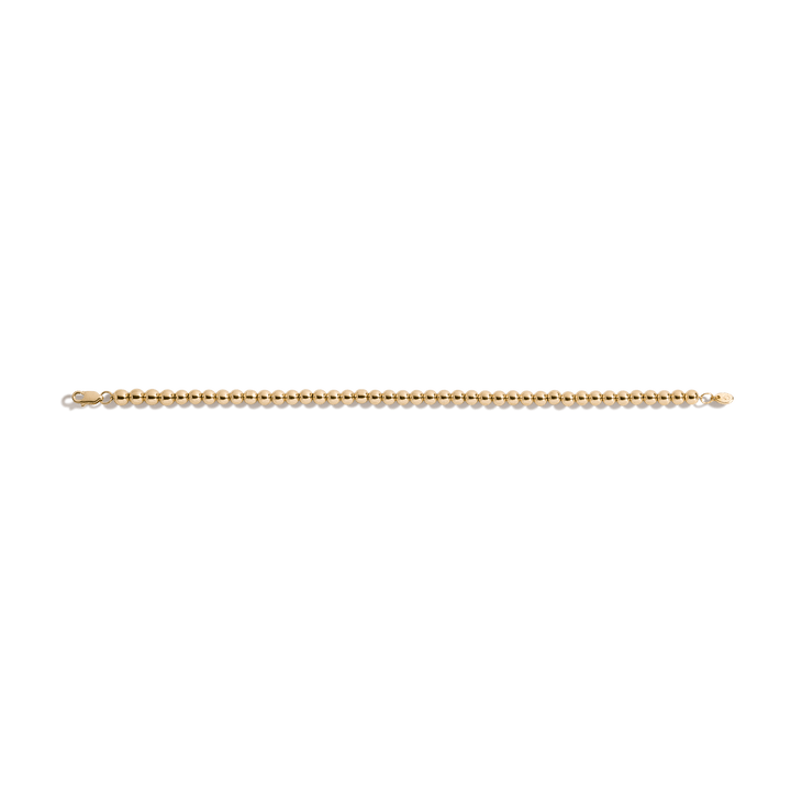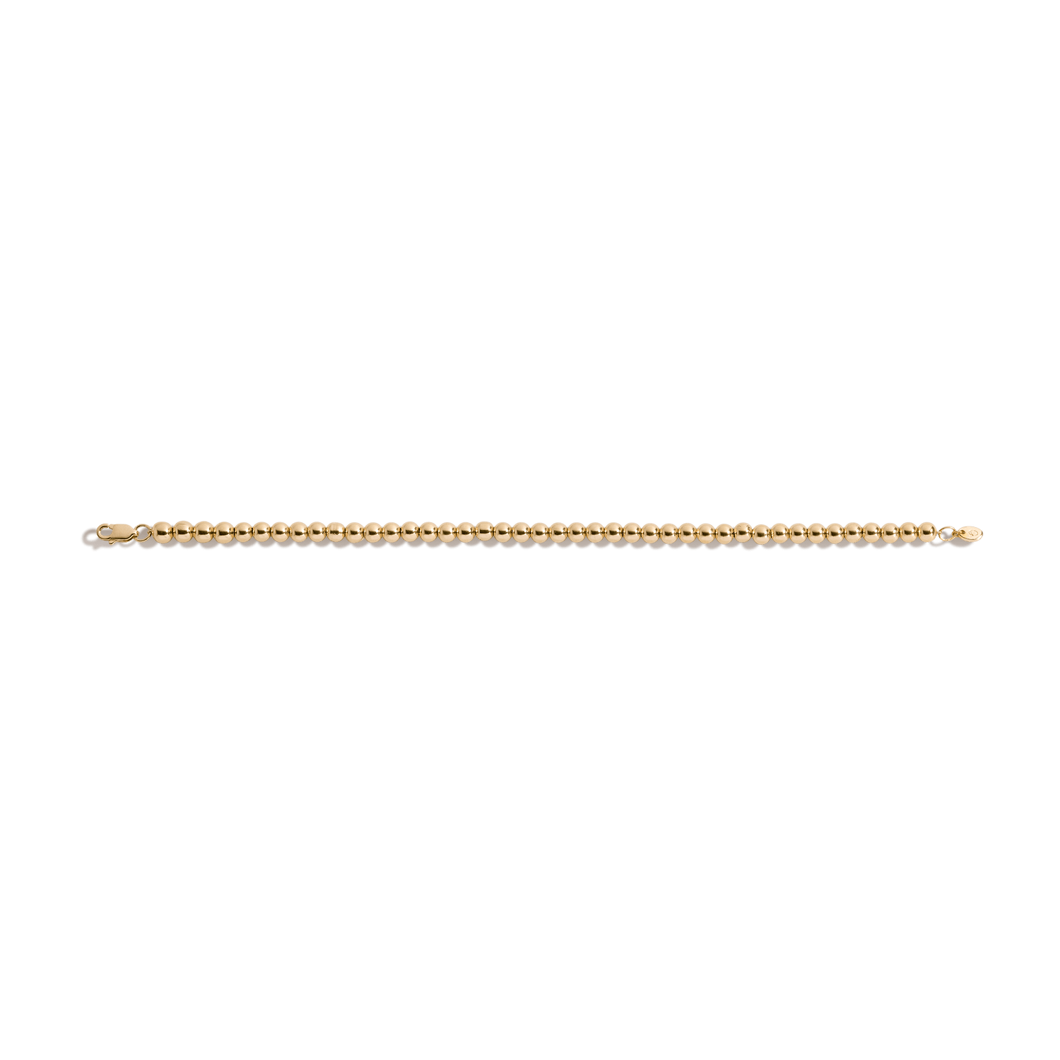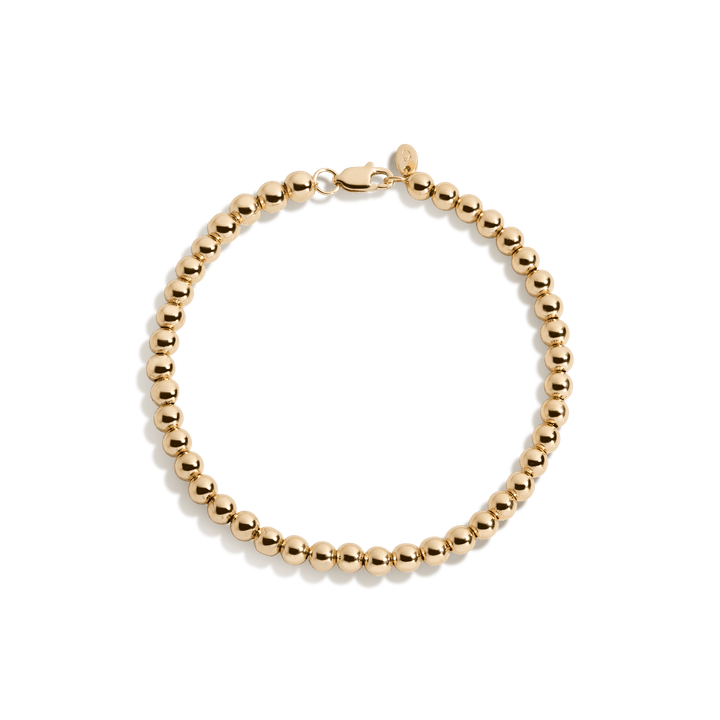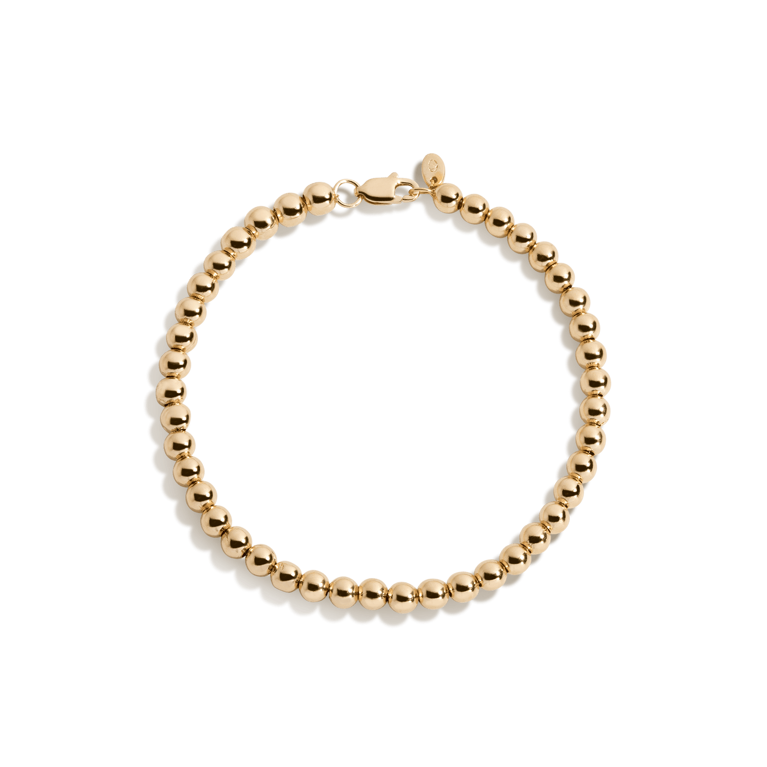 Handcrafted in high-quality gold vermeil with 4mm polished gold beads on a chain. Available in lengths 6.5', 7' or 7.5' with lobster clasp. Thickness: 4mm; weight: 6.5g.