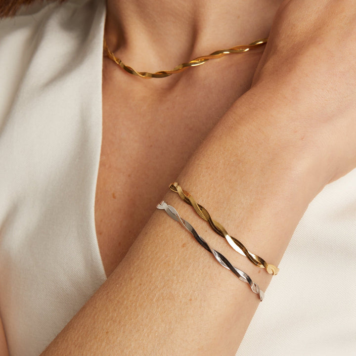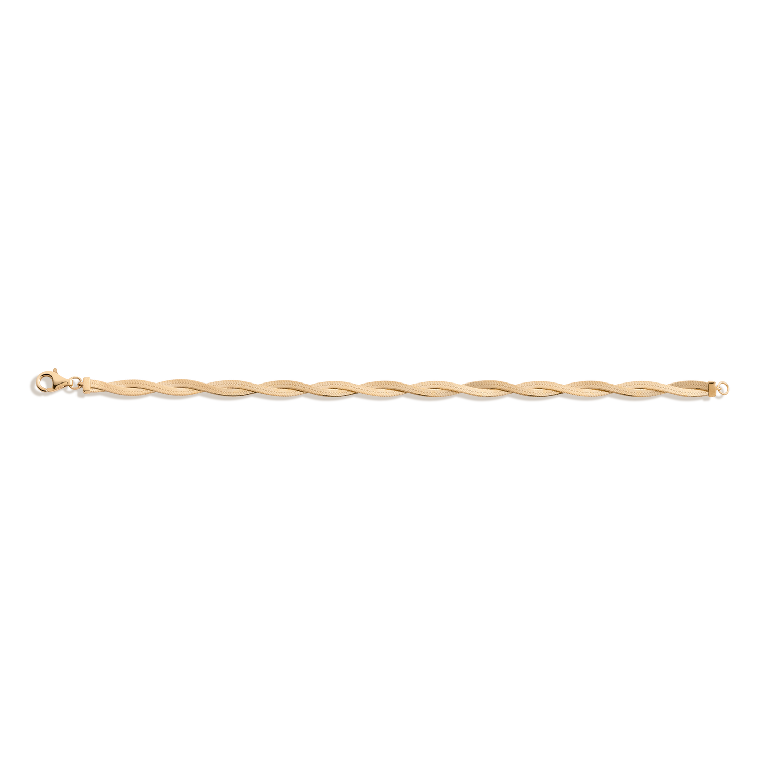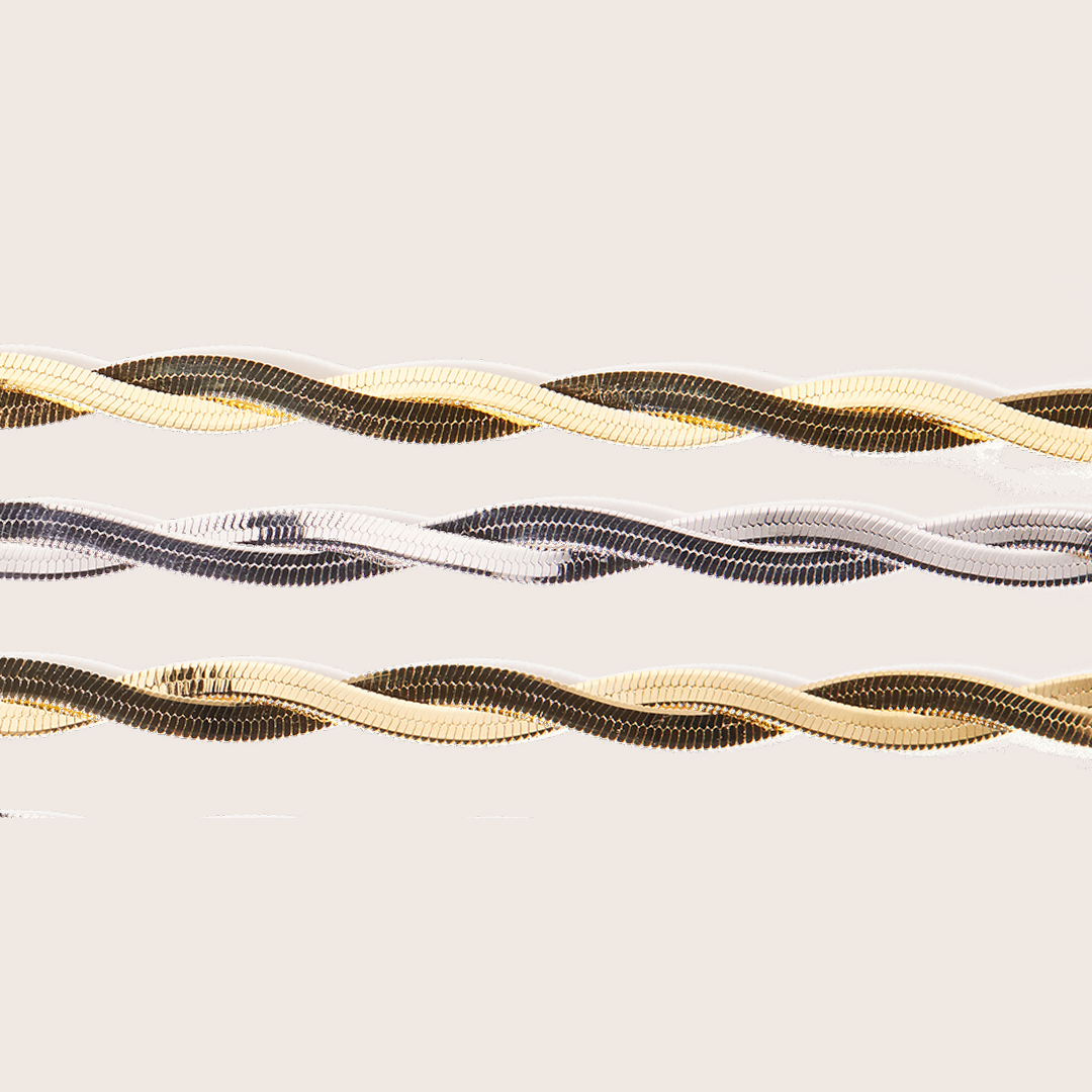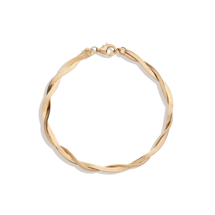 This Herringbone Twist Bracelet by Aurate in Vermeil is a fluid blend of shine and sophistication. Its gently twisted herringbone pattern adds dimensional interest, making it ideal for solo styling or layered stacks. Available in yellow or white tones, it’s a sleek staple for everyday elegance.