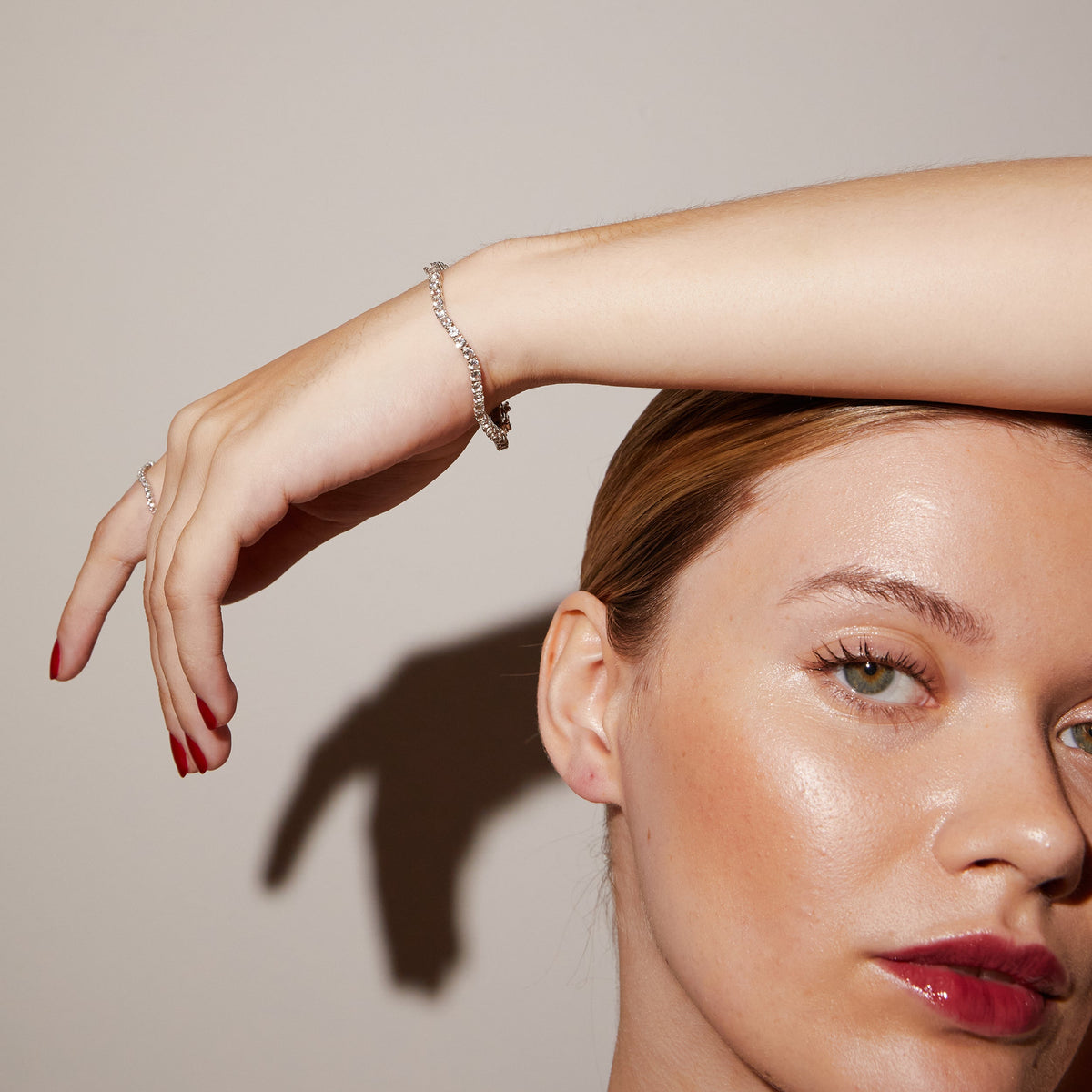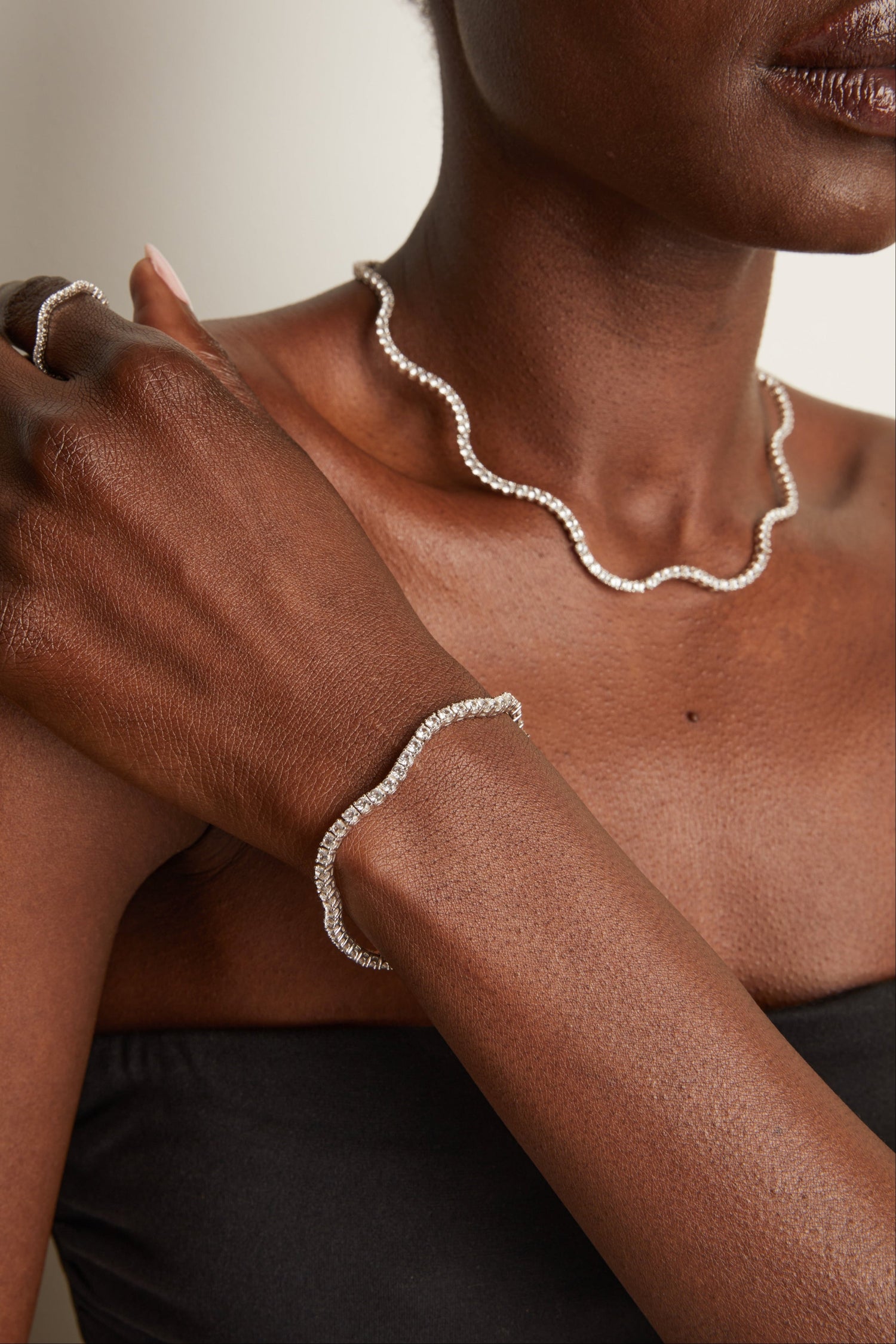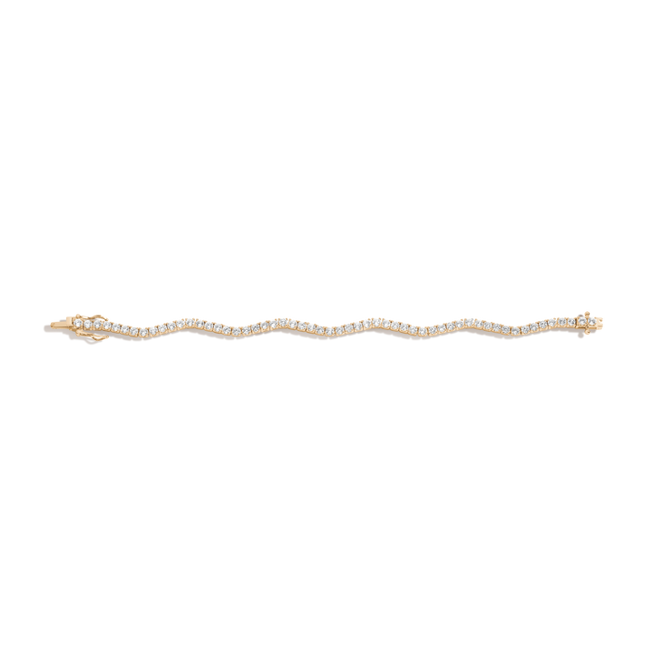 This Lab Grown White Sapphire Wave Tennis Bracelet by Aurate is a fluid celebration of light and movement. With 57 shimmering sapphires curving gracefully along the wrist, it merges modern sophistication with timeless sparkle. Perfect for day or evening elegance.