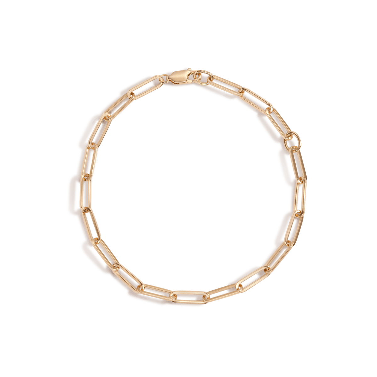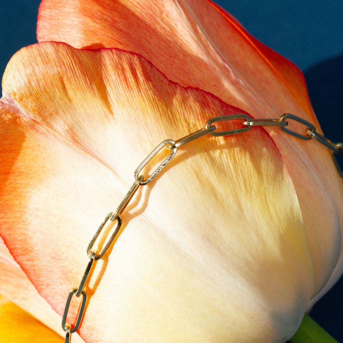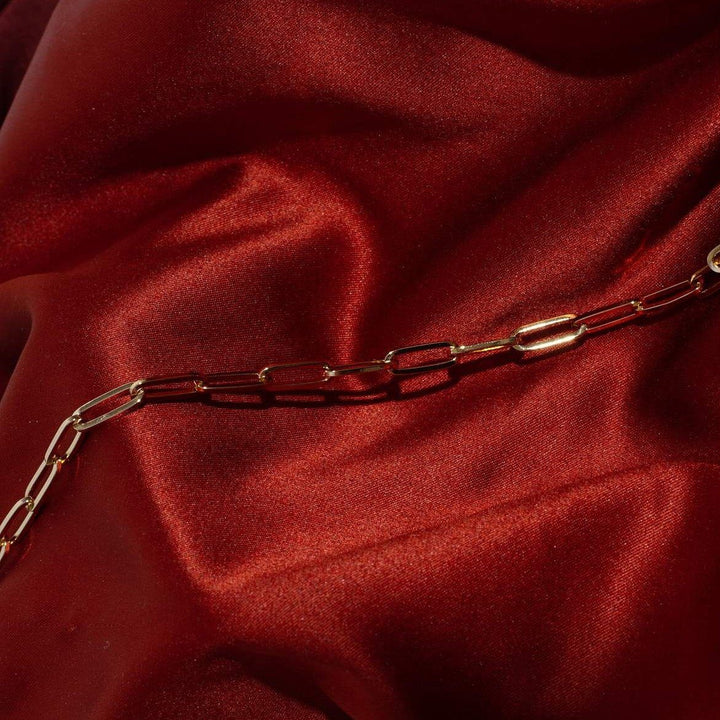 This Large Paperclip Chain Bracelet by Aurate makes a bold yet refined statement. With its oversized rectangular links and golden gleam, it delivers confidence and charisma in every clink. Made for modern icons, it adjusts to fit any wrist with ease and complements everything from tailored blazers to breezy dresses.